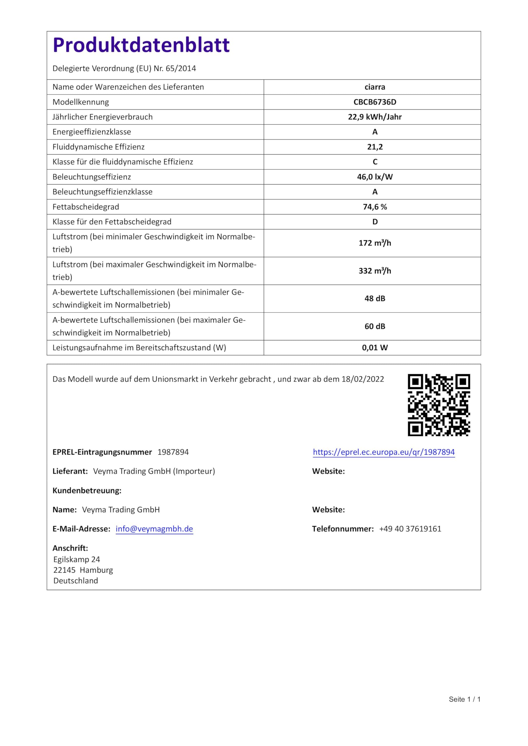 Drei Geschwindigkeitsstufen für jede Koch-Situation - vom leisen Köcheln bis zum wilden Braten. Nur 63 dB(A) Geräuschpegel, also kaum hörbar. Energieklasse A spart bis zu 30% Stromkosten! Mit 2x 1W LED-Lichtern die deine Kochfläche perfekt ausleuchten.