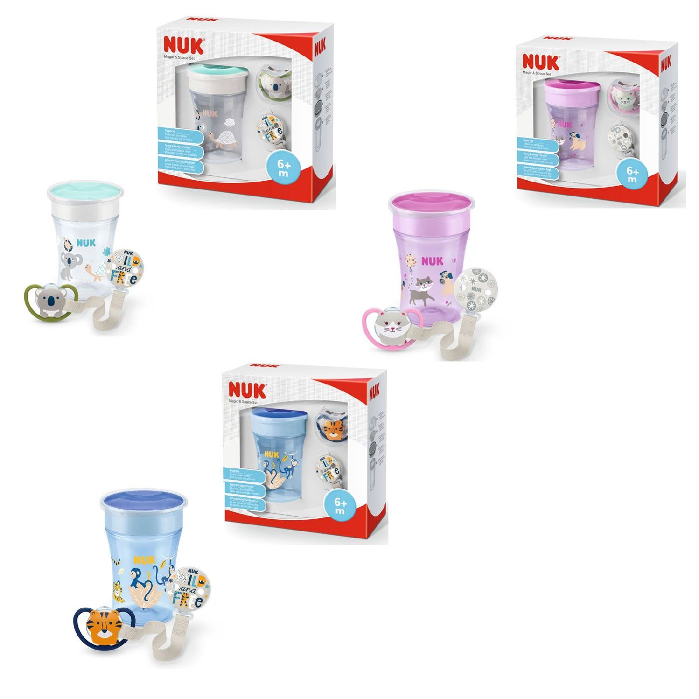 Also, dieses NUK Magic Duo Set ist echt praktisch für alle Eltern, deren Kleine das Trinken lernen! Du kriegst zwei komplette Becher - je nach Set mit 160ml oder 230ml Fassungsvermögen - plus zwei Ersatzdeckel und zwei Trinktüllen. Das auslaufsichere Design ist genial für unterwegs, in der Kita oder einfach zu Hause. Nichts kleckert mehr aus, auch wenn die kleinen Hände mal nicht so zielgenau sind. Die Becher sind aus robustem, BPA-freiem Material, also absolut sicher für dein Kind. Die weiche Trinktülle und die ergonomische Form machen den Übergang von der Flasche zum Becher super einfach. Die süßen Motive in rot animieren die Kleinen zum Trinken - das wird zum echten Spiel! Besonders praktisch: Alle Teile sind spülmaschinengeeignet und mit den Ersatzteilen hält das Set ewig. Ob für Babys ab 6 Monaten oder Kleinkinder ab 8 Monaten - mit diesem Set gibst du deinem Kind den perfekten Start ins selbstständige Trinken. Einfach ein rundum durchdachtes Produkt von NUK, auf das du dich verlassen kannst. Perfekt für den Alltag, ob zu Hause oder unterwegs - damit wird Trinken lernen zum Kinderspiel!