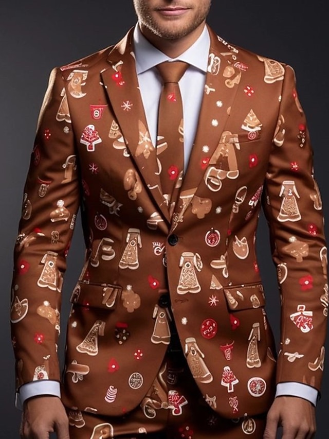 Duohropke Weihnachtsanzug Herren 2-teilig - Lustige Weihnachtsmotive Slim Fit Partyanzug