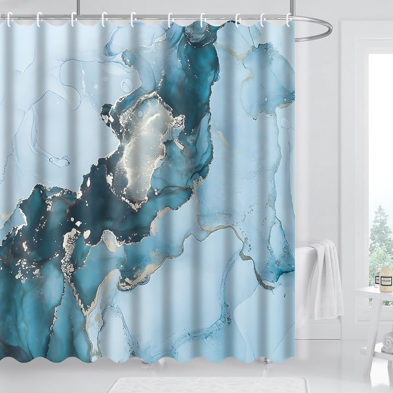 AJALGZ Duschvorhang Weiß-blau Verlauf – Wasserdicht, Schimmelresistent, 178x175 Cm