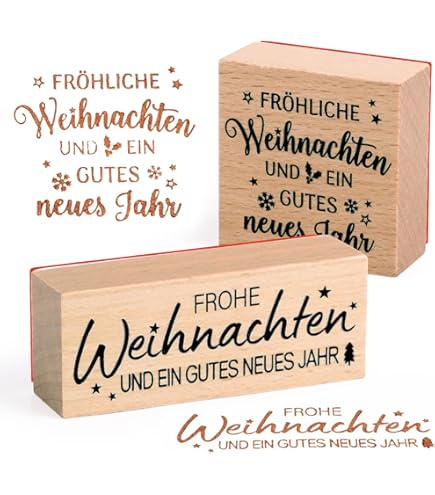 Bastelfreude zur Weihnachtszeit! Dieser wunderschöne Stempel mit der handschriftlichen Aufschrift 'EIN FROHES FEST' und den niedlichen Motiven wie Stern, Baum, Schneemann und Herz bringt weihnachtliche Stimmung auf alle deine Projekte. Jeder Stempel wird handgefertigt im Atelier hergestellt und kommt montiert auf einem praktischen Holzgriff - super einfach in der Handhabung. Mit einer Motivgröße von ca. 18 x 79 mm ist er ideal für Karten, Geschenkanhänger oder Geschenkpapier. Der Clou: Du kannst ihn mit jedem handelsüblichen Stempelkissen verwenden und Jahr für Jahr wieder einsetzen. Ob für persönliche Weihnachtskarten, tolle Geschenkanhänger oder die Gestaltung von eigenem Geschenkpapier - mit diesem Stempel wird alles ganz individuell und persönlich. Eine ausführliche Anleitung mit vielen kreativen Ideen liegt natürlich bei. So macht Weihnachtsbasteln richtig Spaß und deine Geschenke werden zu echten Unikaten. Einfach stempeln und staunen!