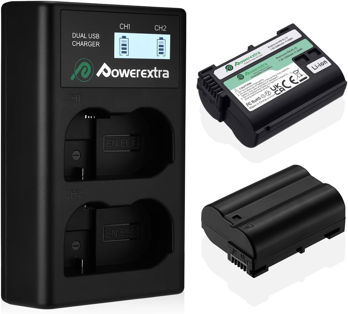 Mehr Power für deine Nikon! Dieses 2er Akku-Set mit je 2100mAh ist kompatibel mit EN-EL15/EN-EL15A/EN-EL15B. Passt perfekt für Nikon D850, D750, D500, D810, D800, D7100 und viele mehr. Inklusive Dual USB-Ladegerät mit Micro USB und Typ-C - lade überall! Smart IC Chip schützt vor Überladung und Überhitzung. Bis zu 90% schnelle Aufladung, dann Umschaltung auf Erhaltungsladung. Verlängere deine Shooting-Zeit deutlich! Perfekt für Reisen, Events oder lange Fototouren. Hol dir das Set und verpasse nie wieder den perfekten Shot wegen leerer Akkus!