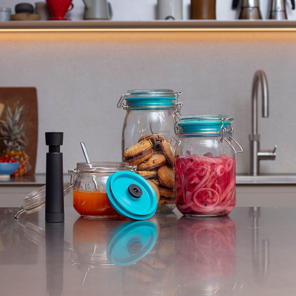 Lebensmittel länger frisch halten - ganz einfach mit diesem ELAYARD Vakuumierset! Im Set enthalten: 2 normale und 2 Weithals-Vakuumdeckel plus eine praktische Handpumpe. Aus lebensmittelechtem Edelstahl und ABS-Kunststoff - absolut sicher für deine Lebensmittel. Einfach den passenden Deckel aufs Glas setzen, Pumpe anschließen und ein paar Mal pumpen - schon ist alles luftdicht verschlossen. So bleiben Nüsse, Mehl, Trockenfrüchte oder übrig gebliebenes Essen viel länger genießbar. Passt für die meisten Standard-Glasgrößen und ist super vielseitig einsetzbar. Die Deckel sind wiederverwendbar - umweltfreundlich und kostensparend. Kein Strom nötig, komplett manuell bedienbar. Perfekt für Vorratshaltung, Meal-Prep oder um Geschenke aus dem Garten länger frisch zu halten. Ein echter Küchenhelfer, der sich schnell bezahlt macht!