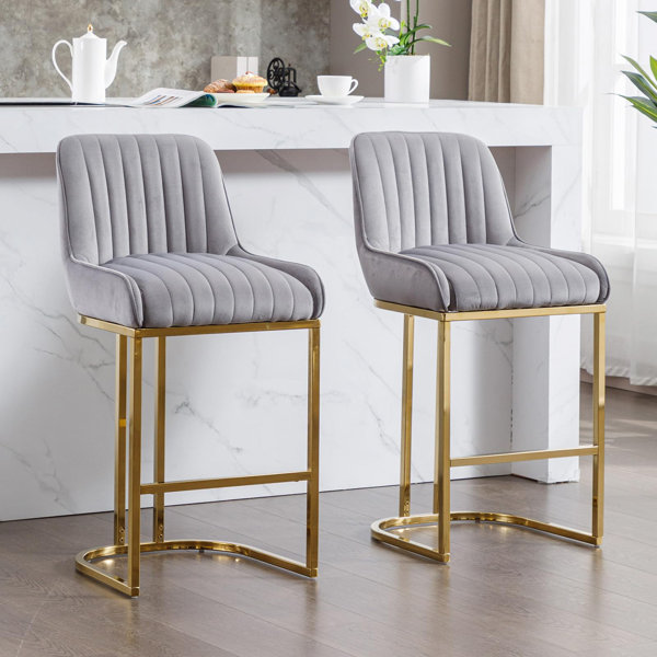 • MEBEL ELITE Barhocker Flores - Schwarz Samt Mit Lehne 81cm