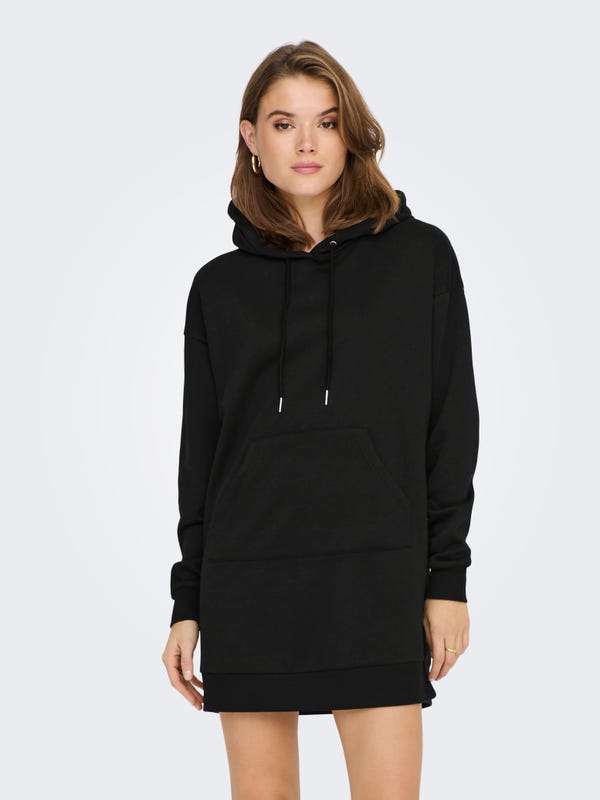 Dieses schwarze Kapuzenkleid von RED by EMP ist dein neuer Liebling für jeden Tag! Aus superweichem Jersey mit 96% Viskose und 4% Elasthan - es liegt sich einfach traumhaft auf der Haut. Die Kapuze gibt dem ganzen einen lässigen Streetwear-Look, ohne dass es zu sportlich wirkt. Die normale Passform sitzt genau richtig - nicht zu eng, nicht zu weit. Und praktisch: Maschinenwäsche ist kein Problem! Perfekt für Uni, Stadtbummel oder gemütliche Abende mit Freunden. Kombinier es mit Sneakern für den casual Look oder mit Stiefeletten für etwas mehr Stil. RED by EMP steht für angesagte Basics, die einfach immer passen - und dieses Kleid ist da keine Ausnahme! Der knielange Schnitt ist genau die richtige Länge - nicht zu kurz, nicht zu lang. Einfach anziehen und gut aussehen - ohne groß nachdenken zu müssen. Dein Go-To Kleid für alle Gelegenheiten!
