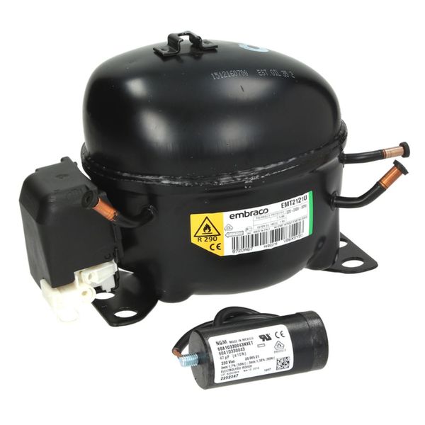 Professioneller EMT2121U Kompressor für deine Kälteanlage! Mit 50Hz Frequenz und 12kg Gewicht ist dieser Kompressor ideal für verschiedene Kühlanwendungen. Der 1/5 HP Motor mit 5,57 cm³ Hubraum leistet bei -15°C satte 364W, bei -20°C noch 297W und bei -25°C immerhin 238W. Besonders umweltfreundlich: Verwendet das Kältemittel R290. Mit CSIR-Starter und für 220-240V Spannung ausgelegt. Die kompakte Bauhöhe von 166mm macht ihn vielseitig einsetzbar. Ob für Kühlschränke, Klimaanlagen oder professionelle Kältetechnik - dieser robuste Kompressor liefert zuverlässige Leistung. Perfekt für Servicetechniker und Heimwerker, die ihre Kälteanlage selbst warten oder reparieren möchten. Ein Qualitätsprodukt das lange hält und sich in verschiedenen Anwendungen bewährt hat!