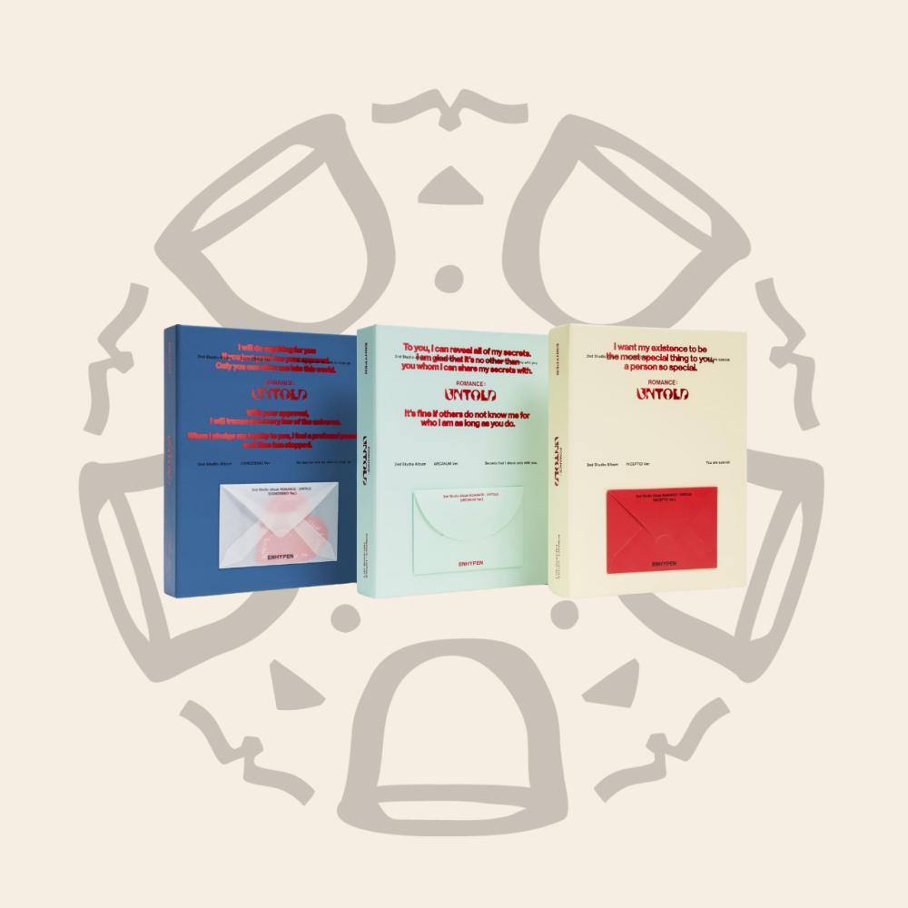 ENGENEs, aufgepasst! Dieses ENHYPEN Album-Set ist ein absolutes Must-Have für jede Collection. ROMANCE: UNTOLD kommt mit allen 3 Versionen - CONCESSIO, ARCANUM und INCEPTIO - in einem kompletten Set. Das Beste: Du bekommst alle Pre-Order Benefits dazu! Jedes Album hat ein einzigartiges Etui mit speziellem Umschlag-Motiv, das Sammlerherzen höher schlagen lässt. Als BolsVos Exclusive gibt's noch zusätzliche K-POP Giveaways obendrauf. Perfekt für alle, die ENHYPEN lieben und ihre Sammlung vervollständigen wollen. Die Qualität ist wie immer top und die Designs einfach atemberaubend. Schnell zuschlagen, bevor es weg ist!