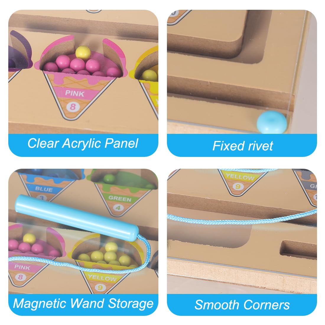 Wow, was für ein cooles Lernspielzeug! Dieses magnetische Labyrinth aus Holz begeistert Kinder ab 3 Jahren und fördert spielerisch Farben- und Zahlenverständnis. Mit Magnetstift, 13 Karten und 55 Teilen in 10 Farben - da gibt's stundenlangen Spielspaß! Vier Spielmöglichkeiten: Perlen nach Farben sortieren, Zahlen zuordnen, Muster nachlegen oder sogar einfache Rechenaufgaben lösen. Das Naturholz ist super verarbeitet, keine scharfen Kanten, und die transparente Acrylplatte ist richtig stabil. Perfekt für die Feinmotorik, Hand-Auge-Koordination und konzentriertes Spielen. Super für unterwegs - nur 380 g leicht und in schöner Verpackung. Ein tolles Geschenk für Geburtstage, Weihnachten oder einfach so. Deine Kinder lernen dabei, ohne es zu merken! Übrigens: Die 9 Nägel sorgen für absolute Sicherheit - nichts wackelt oder geht verloren. Einfach ein geniales Spielzeug, das Bildung und Spaß perfekt verbindet. Auch super für Kindergarten oder Vorschule!