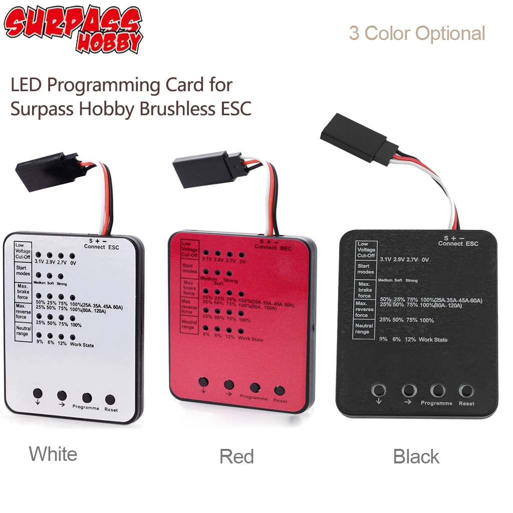 Hol das Maximum aus deinem RC-Auto heraus! Die Fasizi Programmkarte macht das Einstellen deines ESC (Electronic Speed Controller) zum Kinderspiel. Kompatibel mit 25A bis 150A Reglern. Einfach die BEC-Drähte verbinden, ESC einschalten und loslegen! Du kannst die Unterspannungsabschaltung einstellen (wichtig für Lithium-Batterien!), den Startmodus von weich bis aggressiv wählen, Bremskraft und Rückwärtskraft anpassen, sowie den Neutralbereich konfigurieren. Die LED-Anzeige zeigt dir immer den aktuellen Status an. Mit Reset-Taste für Werkseinstellungen. Perfekt für Racerstar und andere ESC-Modelle. So optimierst du dein Fahrzeug genau nach deinen Vorlieben. Mehr Speed, bessere Kontrolle, längerer Akku-Laufzeit - alles mit diesem praktischen Tool!