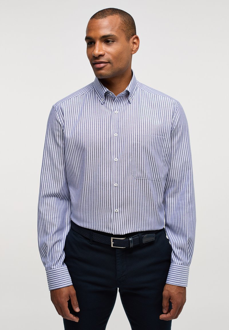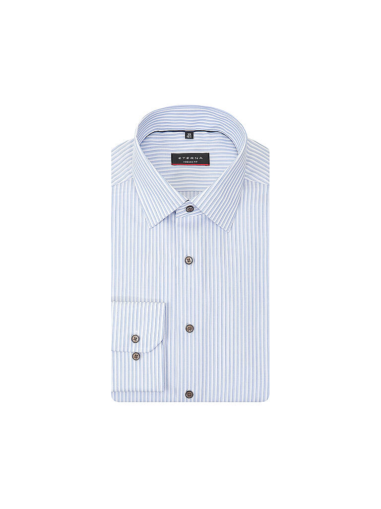 Stylish, bequem und absolut vielseitig – das ETERNA Modern Fit Hemd in dunkelblau-gestreift! Aus weichem Satingewebe (100 % Baumwolle) gefertigt, fühlt es sich angenehm auf der Haut an und ist dazu noch bügelfrei. Der moderne, taillierte Schnitt sorgt für eine schlanke Silhouette, ohne einzuengen. Besonderes Detail: der Underbutton-Down-Kragen und die Kombimanschetten, die dem Hemd einen lässigen, aber stilsicheren Look verleihen. Perfekt fürs Büro, einen Abend mit Freunden oder als Teil eines smart-casual Outfits. Ein Hemd, das einfach immer sitzt – und dabei gut aussieht!