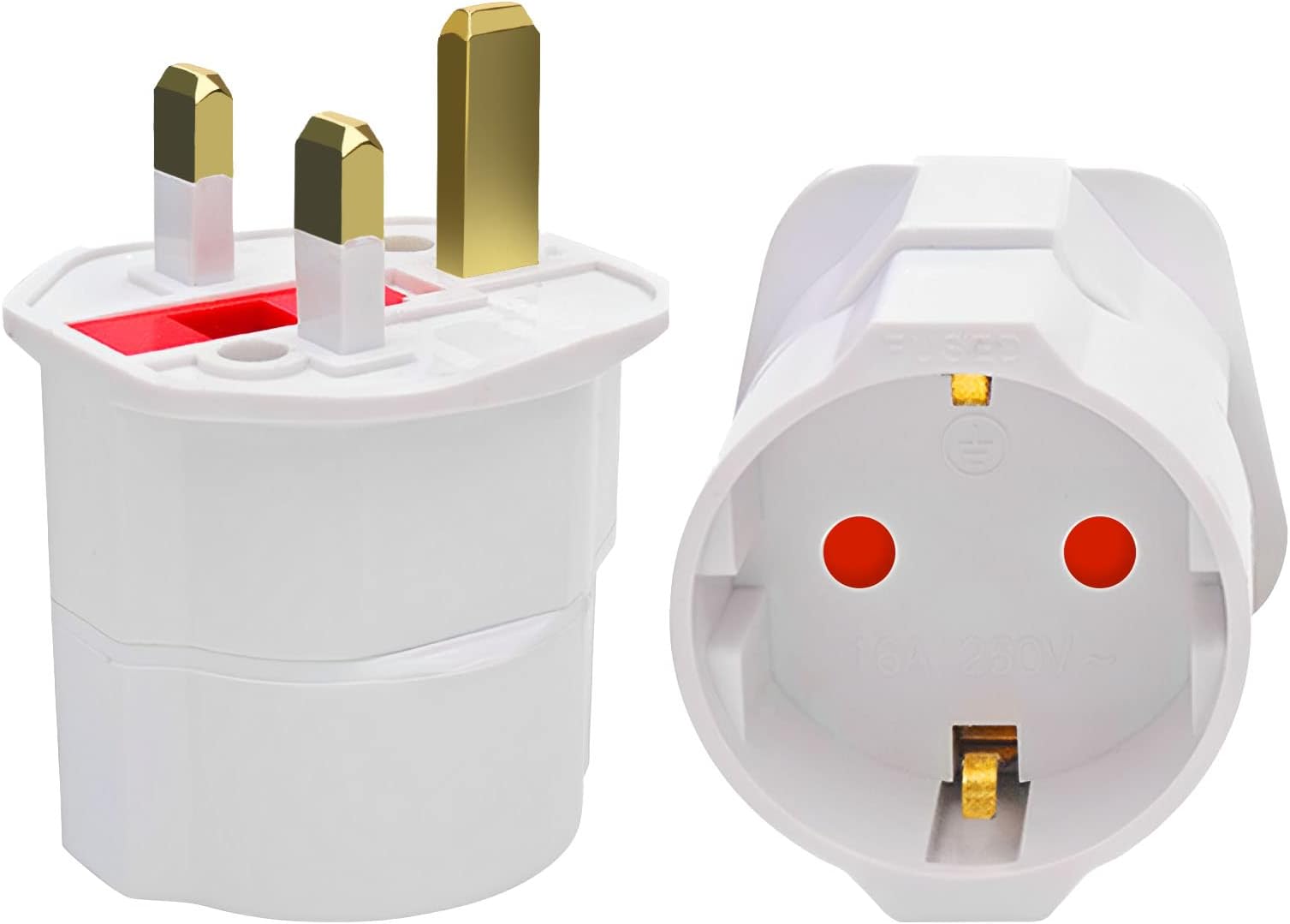 Perfekt vorbereitet für deine UK-Reise! Dieses 6er-Set Reiseadapter von Incutex macht europäische Stecker sofort kompatibel mit britischen Steckdosen. Passt in über 20 Länder - Großbritannien, Irland, Dubai, Singapur, Hongkong und mehr. Bis zu 3250 Watt Leistung, mit 13A Sicherung für Laptop, Haartrockner, Smartphone. Aus robustem ABS-Kunststoff, mit Erdung und Schutzkontakt für maximale Sicherheit. Kompakte Maße 7x5x5cm - ideal für Handgepäck. Unterstützt alle gängigen EU-Stecker: Typ C, E und F. Mit 6 Adaptern kannst du mehrere Geräte gleichzeitig betreiben. Ein unverzichtbarer Begleiter für Urlaub, Geschäftsreisen oder Auslandsaufenthalte. Einfach einstecken und los geht's!