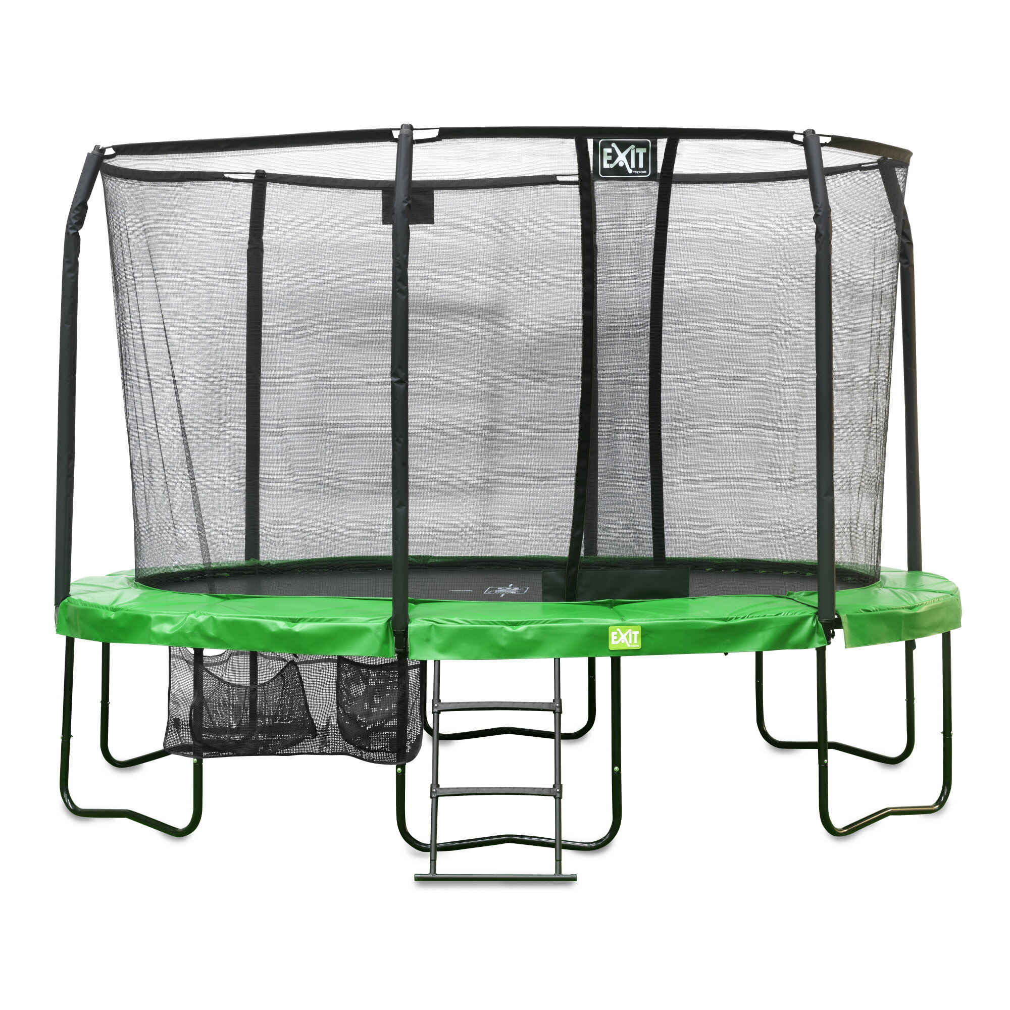 Hüpf frei! Dieses EXIT Toys Trampolin ist der absolute Hit für jeden Garten. Mit dem speziellen Foot Protection System (FPS) bist du auf der sicheren Seite - da passiert nichts mit den Füßen zwischen den Federn! Die extralangen 21,6 cm Federn sorgen für super Sprungkraft, und das Deluxe-Sicherheitsnetz mit selbstschließendem Eingang gibt zusätzliche Sicherheit. Der stabile Rahmen mit L-Beinen steht bombenfest, und der dicke Schutzrand federt jeden Aufprall super ab. Besonders clever: Der Rahmen ist verzinkt und pulverbeschichtet - das bedeutet absolut rostfrei und mega langlebig. Die wasserabweisende PVC-Schicht hält auch bei Regen problemlos stand. Ob für die Kleinen oder für erfahrene Springer - dieses Trampolin macht einfach allen Spaß! Perfekt für den Garten, robust gebaut und mit allem ausgestattet, was für sicheres Springen wichtig ist. Deine Kinder werden es lieben, und du hast ein gutes Gefühl dabei!