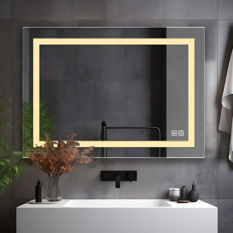 Professionelles Make-up und Rasur - auch nach dem Duschen! Dieser LED-Spiegel mit 70x50cm Größe sorgt mit seiner Antibeschlag-Funktion für immer klare Sicht. Einfach vor dem Duschen aktivieren und nachher sofort mit der Körperpflege starten. Drei Lichtfarben stehen zur Auswahl: Warmlicht für gemütliche Stimmung, Neutrallicht für natürliche Farben und Kaltlicht für perfektes Make-up. Die Helligkeit lässt sich stufenlos von 5% bis 100% dimmen. Der 2,8cm starke Gold-Alurahmen sieht nicht nur luxuriös aus, sondern ist auch super langlebig. Die IP44-Schutzklasse macht ihn unempfindlich gegen Spritzwasser. Die Milchglas-Kanten streuen das Licht sanft und schonen die Augen. Besonders sicher: Die explosionssichere Folie auf der Rückseite verhindert, dass bei Bruch Glassplitter herumfliegen. Perfekt nicht nur fürs Badezimmer, sondern auch als Schminkspiegel im Schlafzimmer oder Deko-Spiegel im Flur. Einfache Montage - inklusive allem nötigen Zubehör. Mit 50.000 Stunden Lebensdauer der LEDs hast du lange Freude an diesem Spiegel!