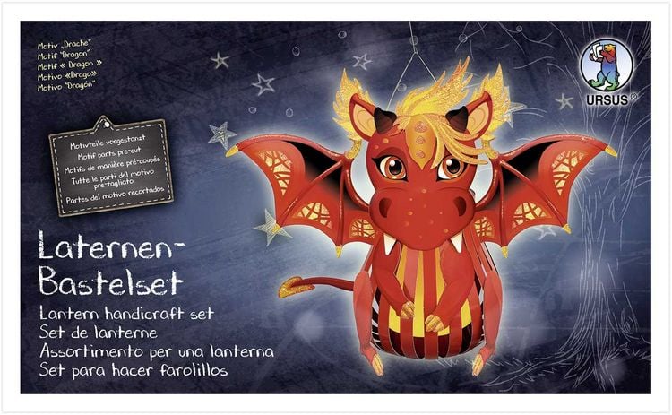 Total süß dieses Ursus Laternen Bastelset mit Dino-Motiv! Alles dabei: vorgestanzte Kartonteile, 2 Transparentpapiere (17cm Durchmesser) und Tragebügel. Einfach zu basteln - auch für kleine Kinderhände. Die fertige Laterne ist ca. 35x31x10cm groß und super stabil. Perfekt für Sankt Martin Umzüge, Herbstdekoration oder einfach für bastelbegeisterte Kinder. Das bunte Dino-Design finden Jungen und Mädchen gleichermaßen cool. In wenigen Schritten zur eigenen Laterne - Bastelspaß garantiert!