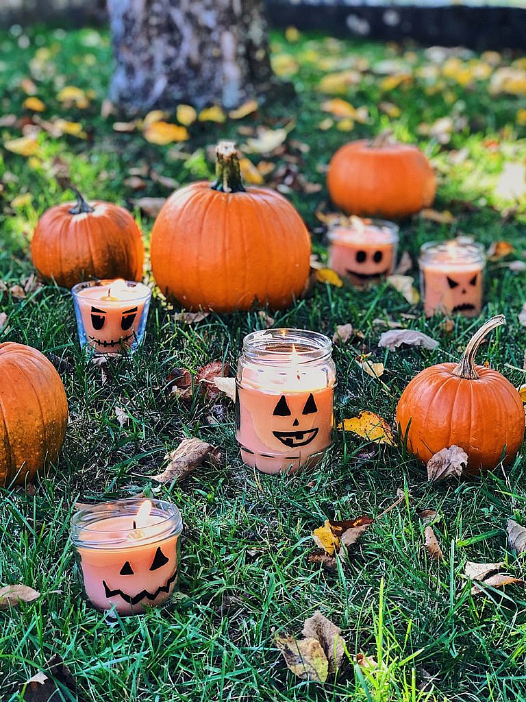 • Halloween Kürbis Kerze - Echte Flammende Wachskerze Mit Gespenst Gesicht