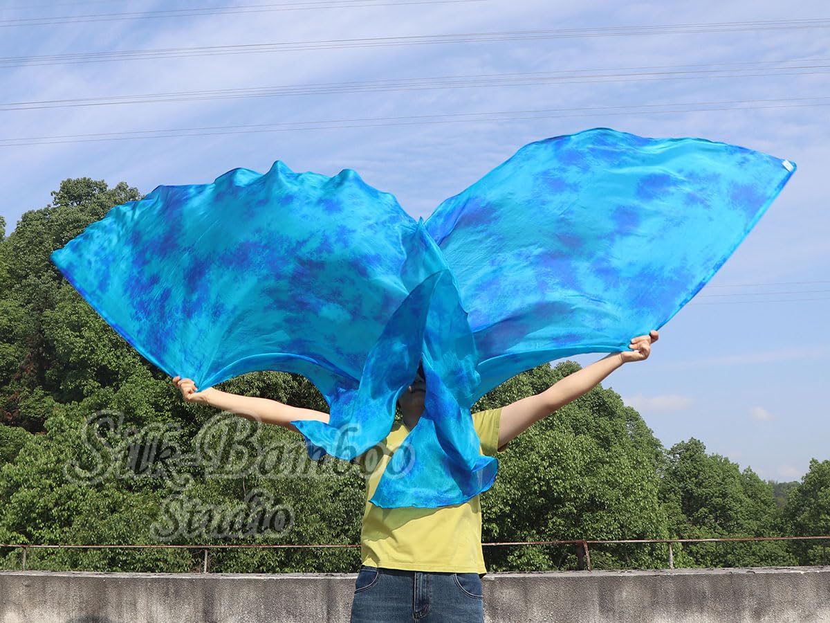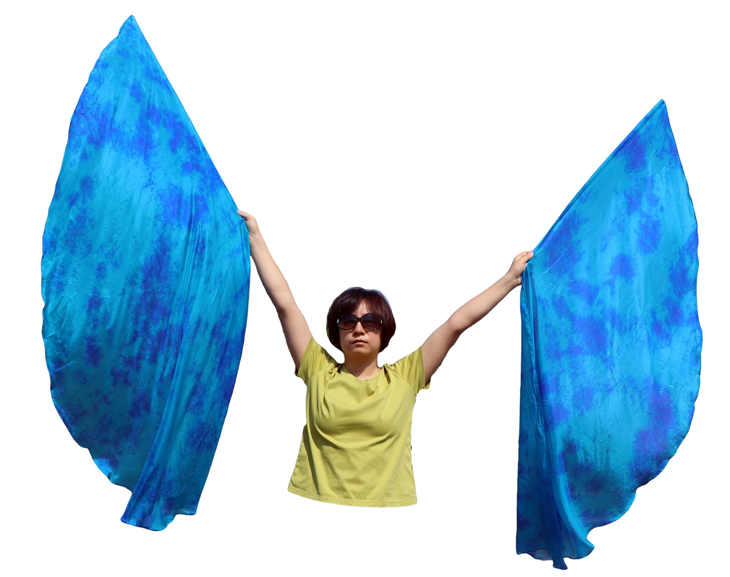 Wow, diese Seidenflügel sind einfach magisch! Hergestellt aus echter 5 Mommes-Seide, fließen sie bei jeder Bewegung wie von selbst. Mit 180cm Breite und 90cm Höhe im Halbkreis-Format sind sie ein echter Blickfang auf jeder Bühne. Die praktischen 2-Segment-Stäbe machen den Transport super einfach - einfach auseinandernehmen und in der Tasche verstauen. Die Montage dauert nur etwa 2 Minuten, dank der cleveren Federkonstruktion. Perfekt für Bauchtanz, Theateraufführungen, Gottesdienste oder jede andere Veranstaltung, bei der es etwas Besonderes sein darf. Die kräftigen Farben mit weichen Abstufungen und der seidige Glanz verleihen jedem Auftritt das gewisse Etwas. Wichtig: Nach dem Erhalt mit Dampf bügeln, dann fließen die Flügel noch besser. Von Wasser fernhalten und trocken lagern - dann hast du lange Freude an diesen wunderschönen Flügeln. Ein Paar (2 Stück) ist im Lieferumfang enthalten. Einfach traumhaft!