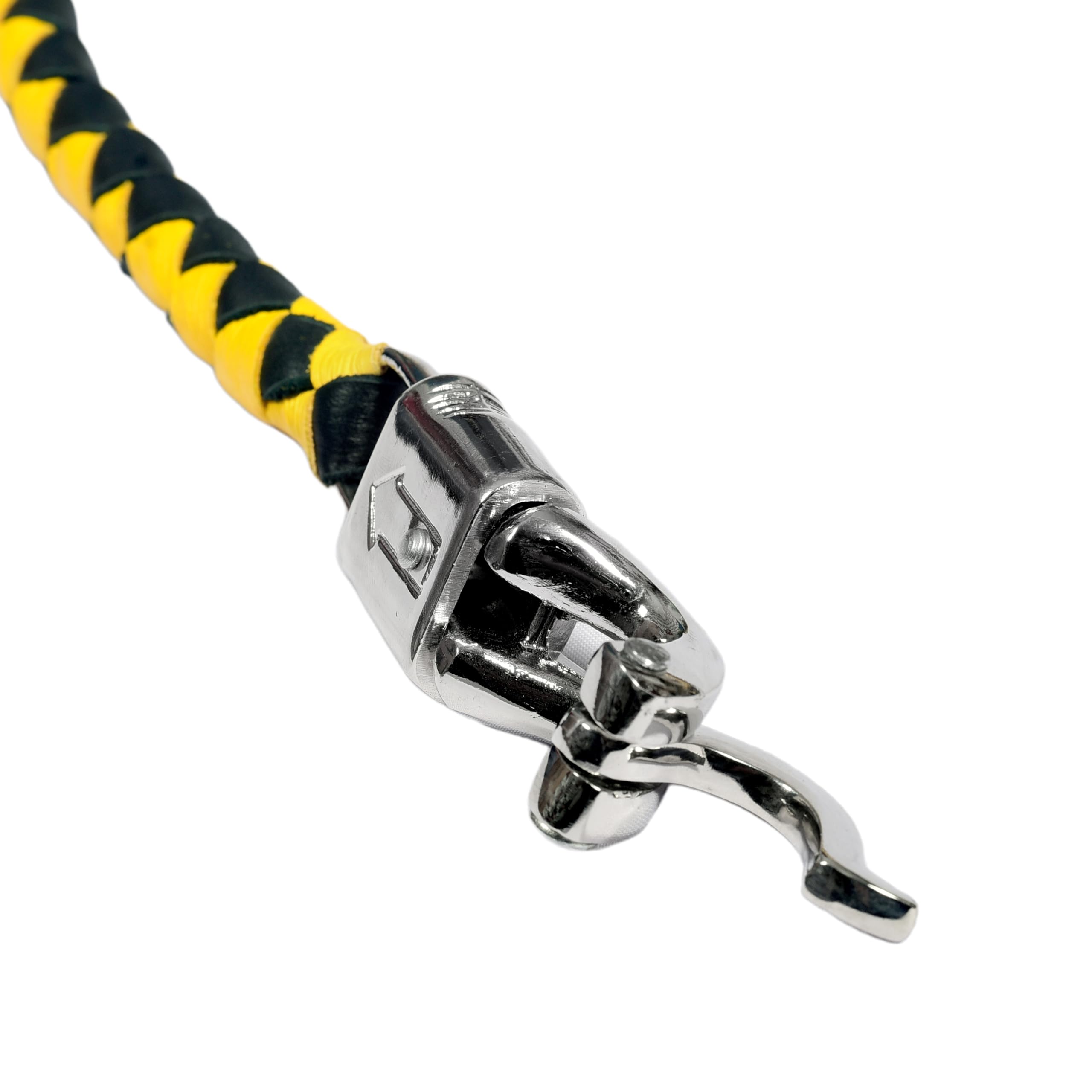 Achtung, hier kommt Style! Diese handgeflochtene Biker-Peitsche aus echtem Leder verleiht deinem Motorrad den ultimativen Old-School-Look. Mit 42 Zoll (107cm) Länge ist sie perfekt proportioniert. Die Chrom-Schnellverschluss-Schnalle macht das Anbringen zum Kinderspiel - einfach um den Lenker und zuschnappen. Aber sie ist nicht nur hübsch: Die bewegliche Peitsche erhöht deine Sichtbarkeit im Verkehr und macht andere Fahrer auf dich aufmerksam - mehr Sicherheit durch bessere Erkennbarkeit! Verschiedene Farbkombinationen verfügbar (Schwarz, Rot-Schwarz, Blau-Schwarz, etc.). Robustes Nylon-Innenleben für Langlebigkeit. Mehr als nur Accessoire - ein Statement der Biker-Kultur. Perfekt als Geschenk für Motorrad-Fans oder um dein eigenes Bike aufzuwerten. Setze ein Zeichen und falle auf - im positiven Sinne!