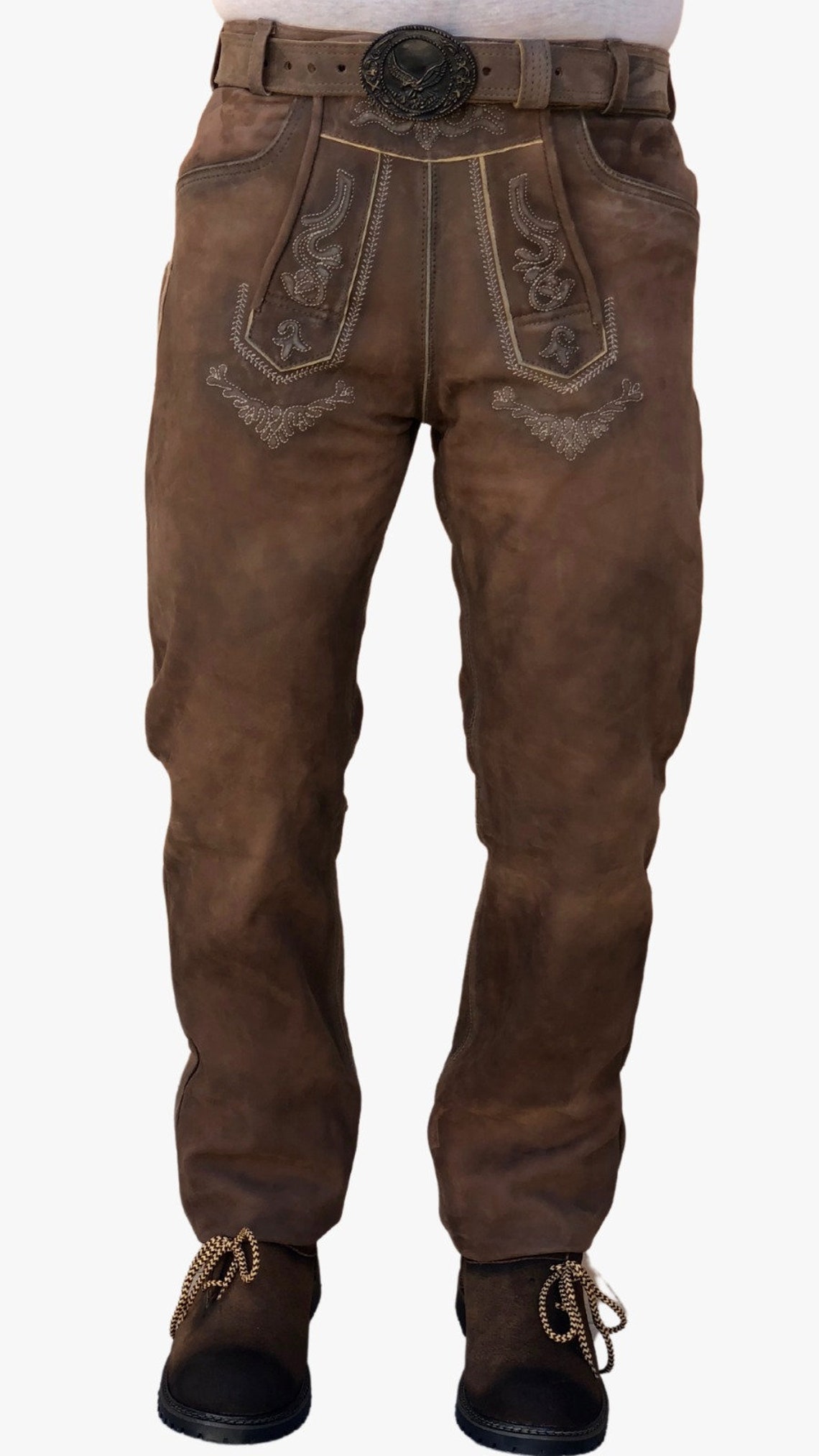 • Echtleder Trachtenhose Herren Lang - Mit Hosenträgern & Stickereien