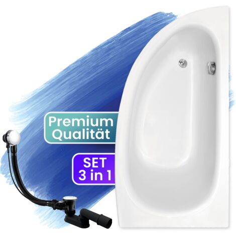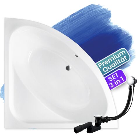 BADLAND Eckbadewanne 134x134cm - Komplettset Weiß Acryl
