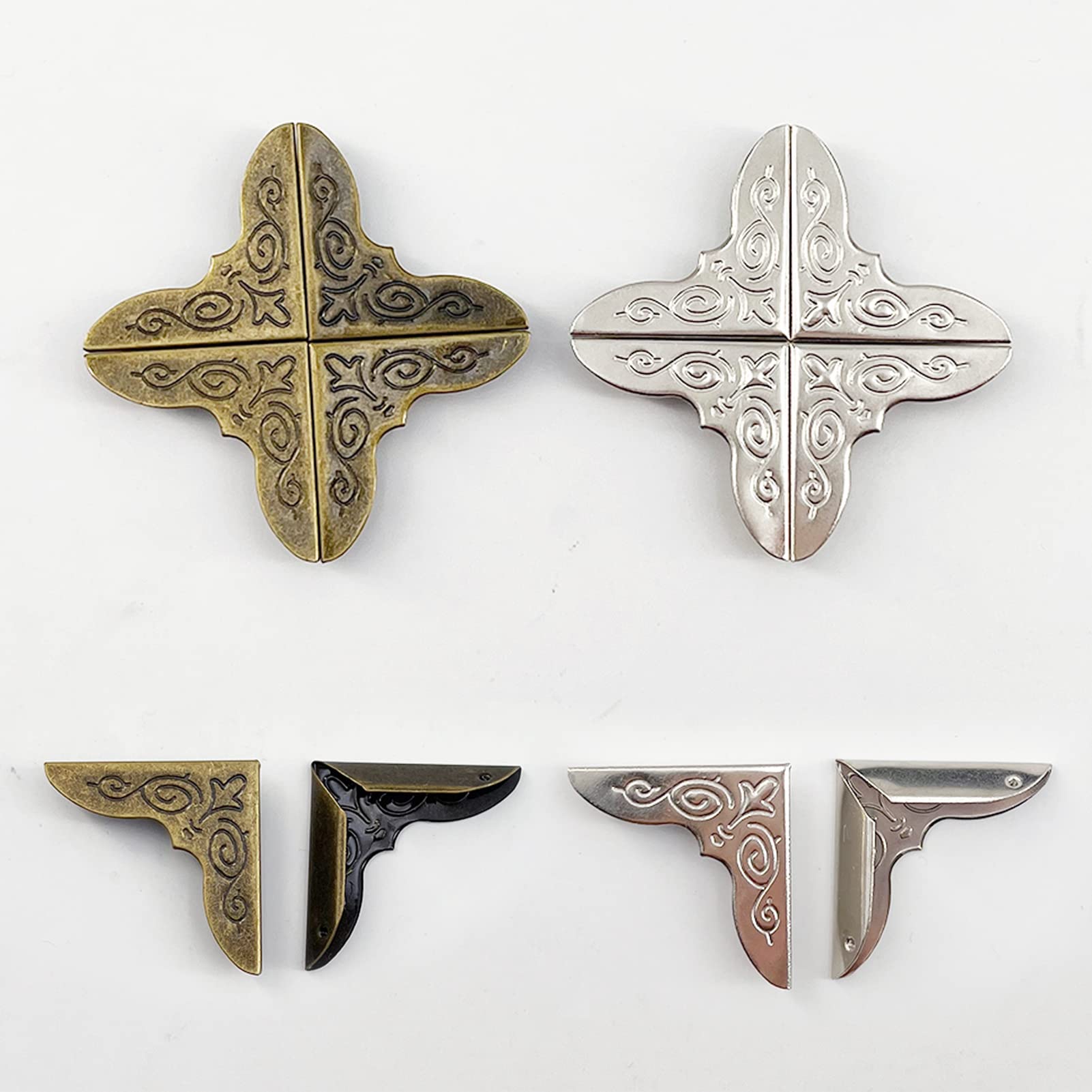 Gib deinen Büchern den royalen Schutz, den sie verdienen! Diese 40 Vintage Buch-Eckenschützer aus Metall im schönen Bronze-Look machen aus jedem Buch ein kleines Kunstwerk. Das retro Design verleiht deinen Büchern, Alben, Ordnern oder Kalendern sofort einen nostalgischen Charme. Aber nicht nur hübsch - die stabilen Eisen-Ecken schützen die empfindlichen Buch-Ecken zuverlässig vor Beschädigungen und Abnutzung. Einfach auf die Ecken drücken und schon sind sie fest an Ort und Stelle. Keine Schrauben, kein Kleber - total unkompliziert! Perfekt für Bücherliebhaber, Sammler oder alle, die ihren Schätzen etwas Besonderes gönnen wollen. Aus hochwertigem Eisen, das nicht rostet oder sich leicht verformt.