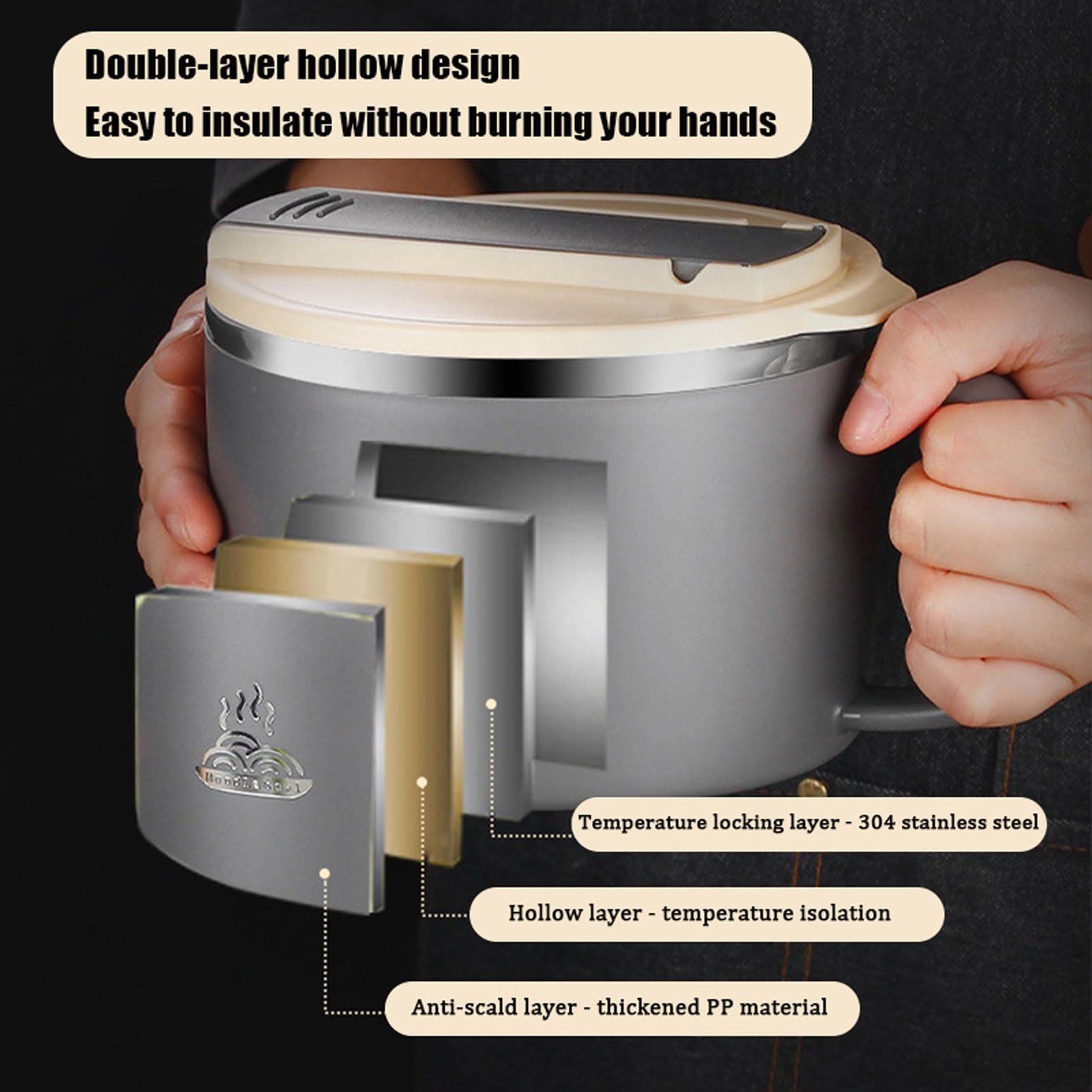 Perfekt für alle Nudel-Fans! Diese praktische Instant-Nudelschüssel aus Edelstahl 304 hält deine Speisen lange warm und kalt. Mit 1300ml Fassungsvermögen ist sie ideal für Studenten, Büro oder unterwegs. Das doppelschichtige Hohlraum-Design schützt vor Verbrennungen - du kannst die Schüssel auch mit heißem Inhalt sicher anfassen. Der Deckel mit Silikondichtung ist absolut tropfsicher, perfekt für Suppen, Nudeln, Reis oder Müsli. Maße: 18x15x12cm, Gewicht nur 268g - super leicht für unterwegs! In blau oder grün erhältlich. Einfach reinigen und immer wieder verwenden. Ob im Wohnheim, im Büro oder beim Camping - mit dieser Schüssel genießt du immer deine Lieblingsgerichte zur richtigen Temperatur. Ein echter Allrounder für deine Küche!