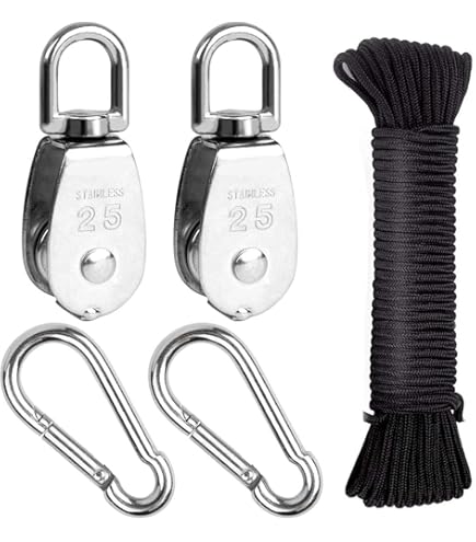Schwere Lasten leicht bewegen! Das M20 Umlenkrollen-Set aus Edelstahl macht Heben und Ziehen zum Kinderspiel. \\n\\nTragkraft: 150kg pro Rolle - richtig stark! Mit 360° Drehgelenken für flexibles Arbeiten. \\n\\nMaterial: Edelstahl 304 - rostfrei und extrem langlebig. Perfect für den Außeneinsatz. \\n\\nIm Lieferumfang: \\n• 2x M20 Riemenscheiben \\n• 2x Augenplatten \\n• 2x Klemmhaken \\n• 2x Klauenbolzen \\n• 1x schwarzes Seil (200cm) \\n• 12x Expansionsrohre \\n• 12x Schrauben \\n\\nEinsatzgebiete: \\n• Boote und Yachten \\n• Markisen und Planen \\n• Garagentore \\n• Wäscheleinen \\n• Baustellen \\n• Bergbau und Landwirtschaft \\n\\nVorteile: \\n• Einfache Bedienung \\n• Vielseitige Verankerung \\n• Verschleißfestes Seil \\n• Professionelle Qualität \\n\\nPerfekt für Handwerker, Bootsbesitzer und Heimwerker - zuverlässig und sicher!