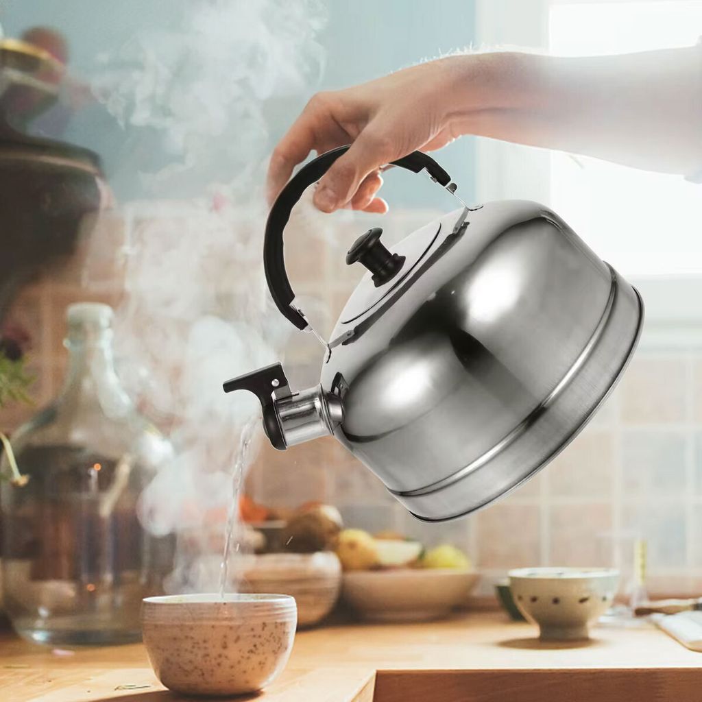 Klassischer Pfeifkessel für deine Küche! Der hgk Venus Wasserkessel ist nicht nur schick, sondern auch super praktisch. Mit 2,0 Liter Fassungsvermögen ideal für Familien oder wenn mal schnell größere Mengen heißes Wasser benötigt werden. Der Korpus besteht aus 0,6mm starkem 18/10 Edelstahl (AISI 304) - rostfrei und langlebig. Der mehrschichtige Boden mit 2,0mm Aluminiumkern macht ihn kompatibel mit ALLEN Herdarten: Gas, Elektro, Ceran und natürlich Induktion! Der Silikon-beschichtete Nylon-Griff bleibt immer kühl und liegt gut in der Hand. Mit nur 0,95kg Gewicht ist er leicht zu handhaben. Das glänzende Außendesign sieht in jeder Küche gut aus. Wenn das Wasser kocht, pfeift er laut und deutlich - so verbrennst du dich nicht und vergisst nichts auf dem Herd. Ein echter Klassiker, der einfach funktioniert!