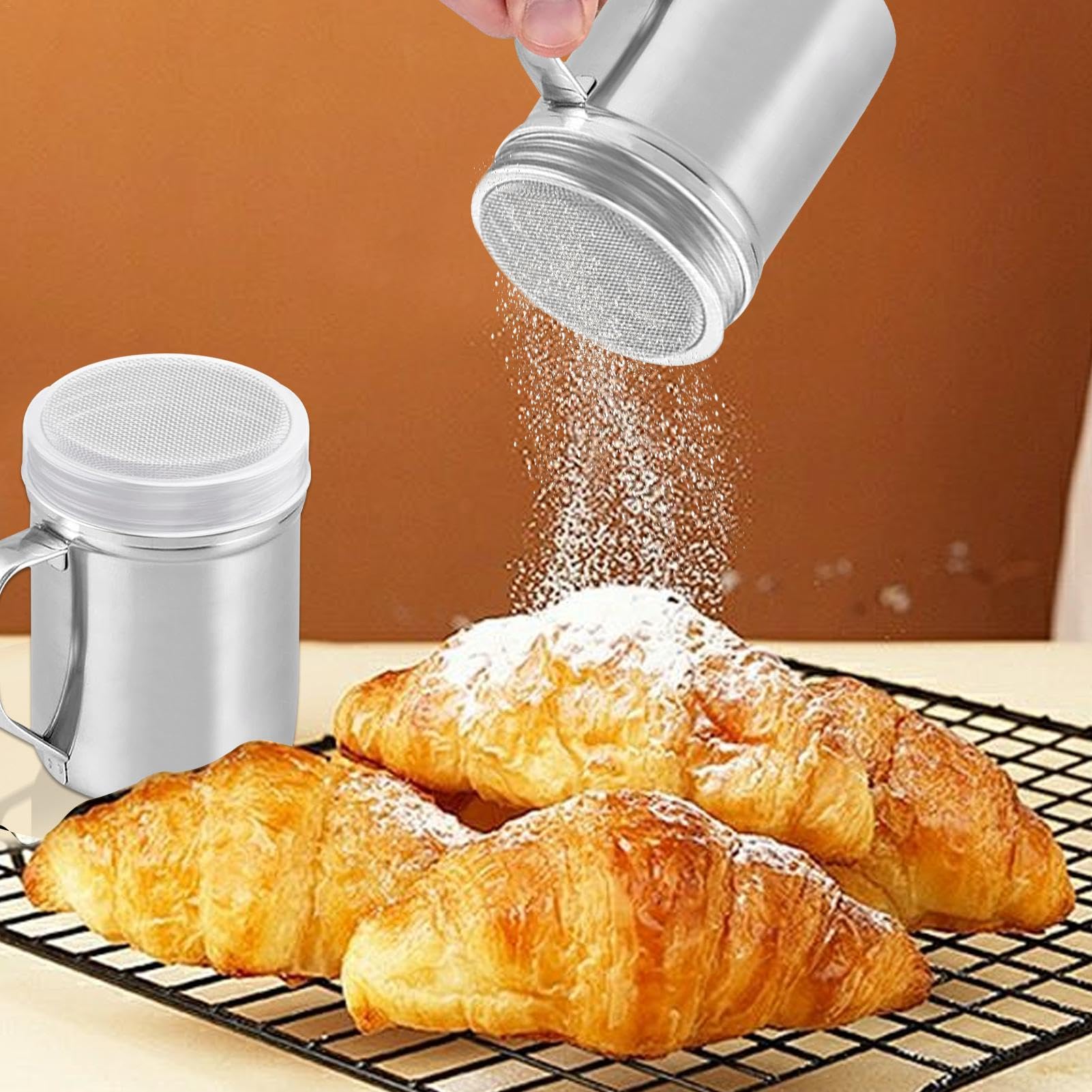 Back-Profi oder Hobby-Konditor? Dieser Edelstahl-Streuer macht dein Leben leichter! Mit dem feinen Sieb streust du Puderzucker, Kakao oder Mehl in perfekten, kontrollierten Linien - kein unkontrolliertes Verklumpen mehr! Der transparente Deckel hält deine Zutaten frisch und schützt vor Feuchtigkeit. Mit nur 6x8,5 cm ist der Streuer super handlich und passt in jede Küche. Aus hochwertigem Edelstahl gefertigt, ist er rostfrei und super leicht zu reinigen - einfach mit warmem Wasser abspülen. Perfekt fürs Verzieren von Kuchen, für Cappuccino-Schaum oder zum Bestreuen von Desserts. Das ergonomische Design liegt gut in der Hand und die einteilige Konstruktion verhindert lästige Schmutzansammlungen. Ein unverzichtbares Tool für jede Küche - ob Profi-Bäckerei oder heimische Backstube!