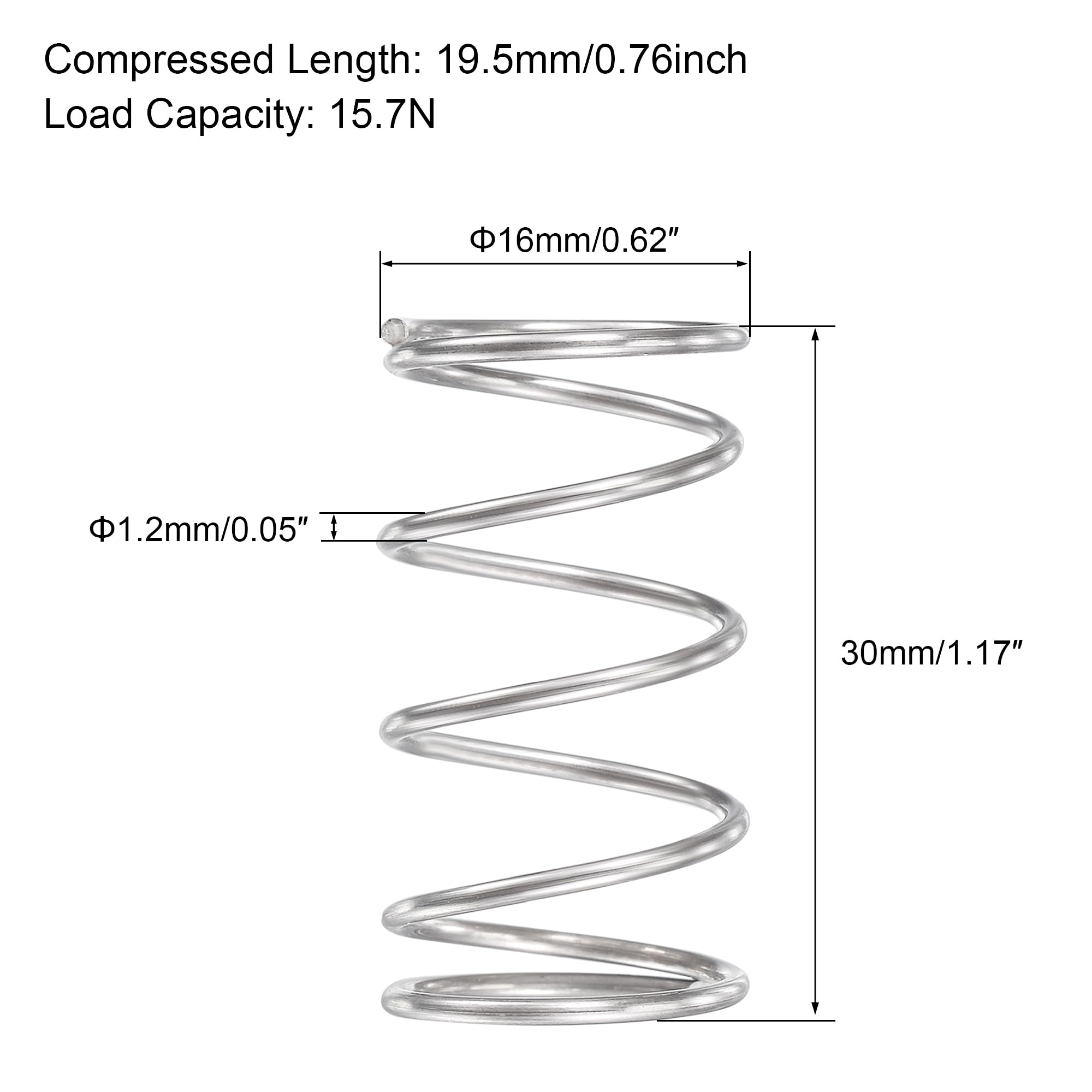 Im 10er-Set: Hochwertige Druckfedern aus Edelstahl 304 für unzählige Anwendungen! Mit 15mm Außendurchmesser, 1mm Drahtstärke und 60mm Gesamtlänge.