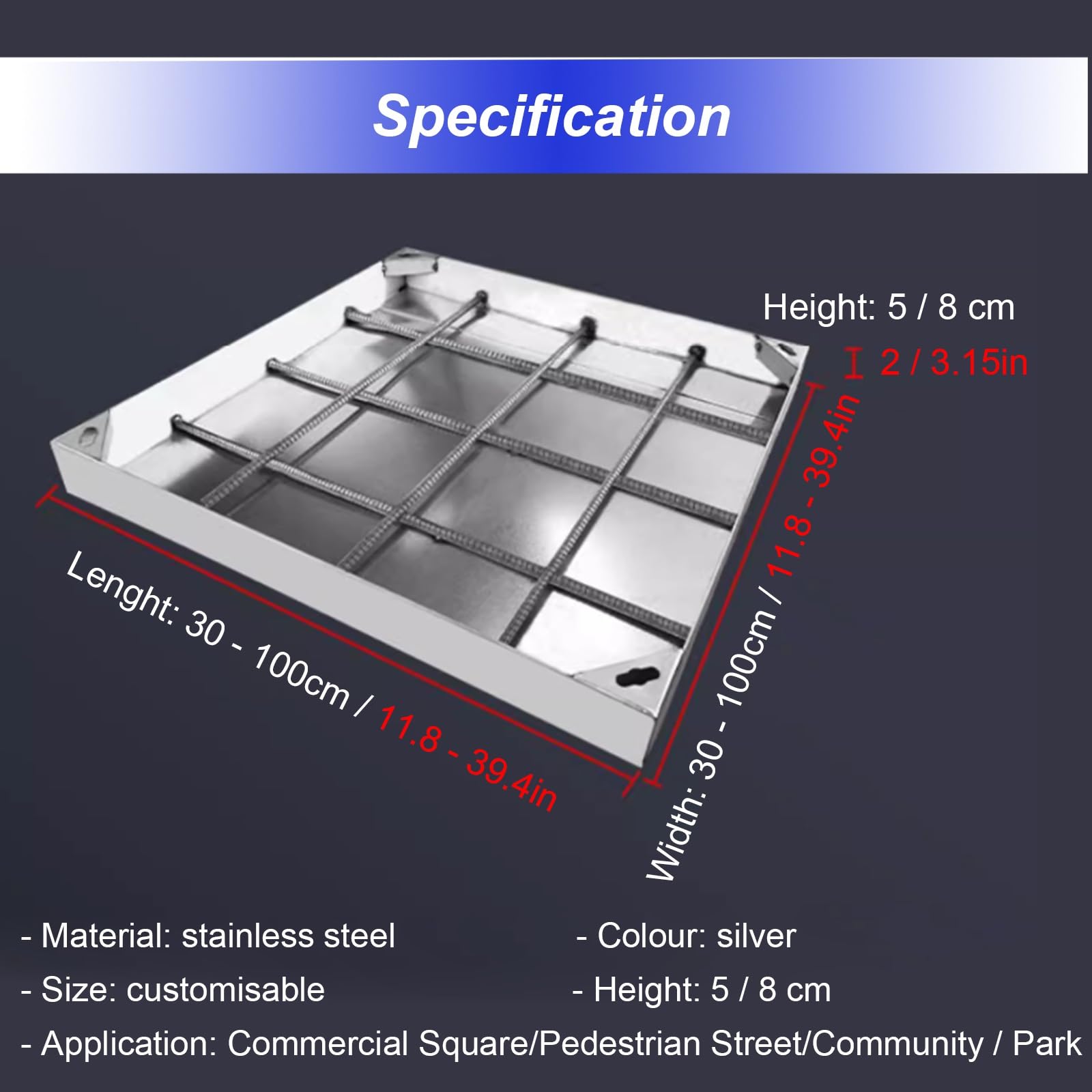Dieser unsichtbare Schachtdeckel aus Edelstahl macht lästige Schachtöffnungen endlich unsichtbar! Mit den Maßen 30x50x5 cm und einer Plattenstärke von 3 mm ist er robust genug für eine Traglast von bis zu 2,6 Tonnen - ideal für Einfahrten, Gehwege oder Terrassen. Das flächenbündige Design ermöglicht die Verlegung mit den gleichen Materialien wie der umgebende Boden (Fliesen, Beton, etc.) - nach der Installation sieht man kaum noch, dass dort eine Öffnung ist! Der Rahmen besteht aus Edelstahl 201, der Sockel aus verzinktem Stahl - beides besonders langlebig und witterungsbeständig. Die Montage ist einfach: Rahmen einsetzen, Abdeckung einsetzen, mit Zement fixieren und Bodenbelag verlegen. Der mitgelieferte Haken erleichtert das spätere Öffnen für Wartungsarbeiten. Perfekt für private Gärten, aber auch für den kommunalen Bereich geeignet. Endlich keine Stolperfallen mehr!