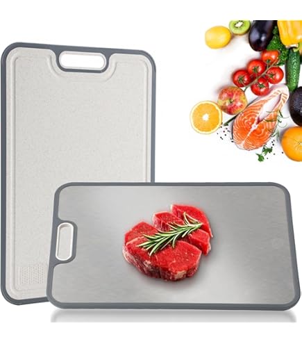 Boah, dieses Titan Schneidebrett Set ist ja mal der absolute Hammer für jede Küche! Im 2er-Set mit zwei Größen - 39x28 cm und 34x23 cm - also perfekt für verschiedene Aufgaben. Das besondere: Beide Bretter sind beidseitig nutzbar! Eine Seite hat ne kratzfeste Wabenstruktur - ideal für rohes Fleisch, Fisch und Geflügel. Die andere Seite ist fein gebürstet - perfekt für Gemüse, Obst und Brot. So vermeidest du Kreuzkontaminationen total easy. Aus 316 Edelstahl mit Titanbeschichtung - richtig robust, rostfrei und absolut hygienisch. Messerschonend obendrein - deine Klingen bleiben länger scharf. Komplett BPA-frei und lebensmittelecht, also keine Sorge vor schädlichen Stoffen. Einfach in der Spülmaschine reinigen - nimmt keine Gerüche oder Farben an. Einfach ein professionelles Küchenutensil das wirklich jeder Hobbykoch und Profi lieben wird!