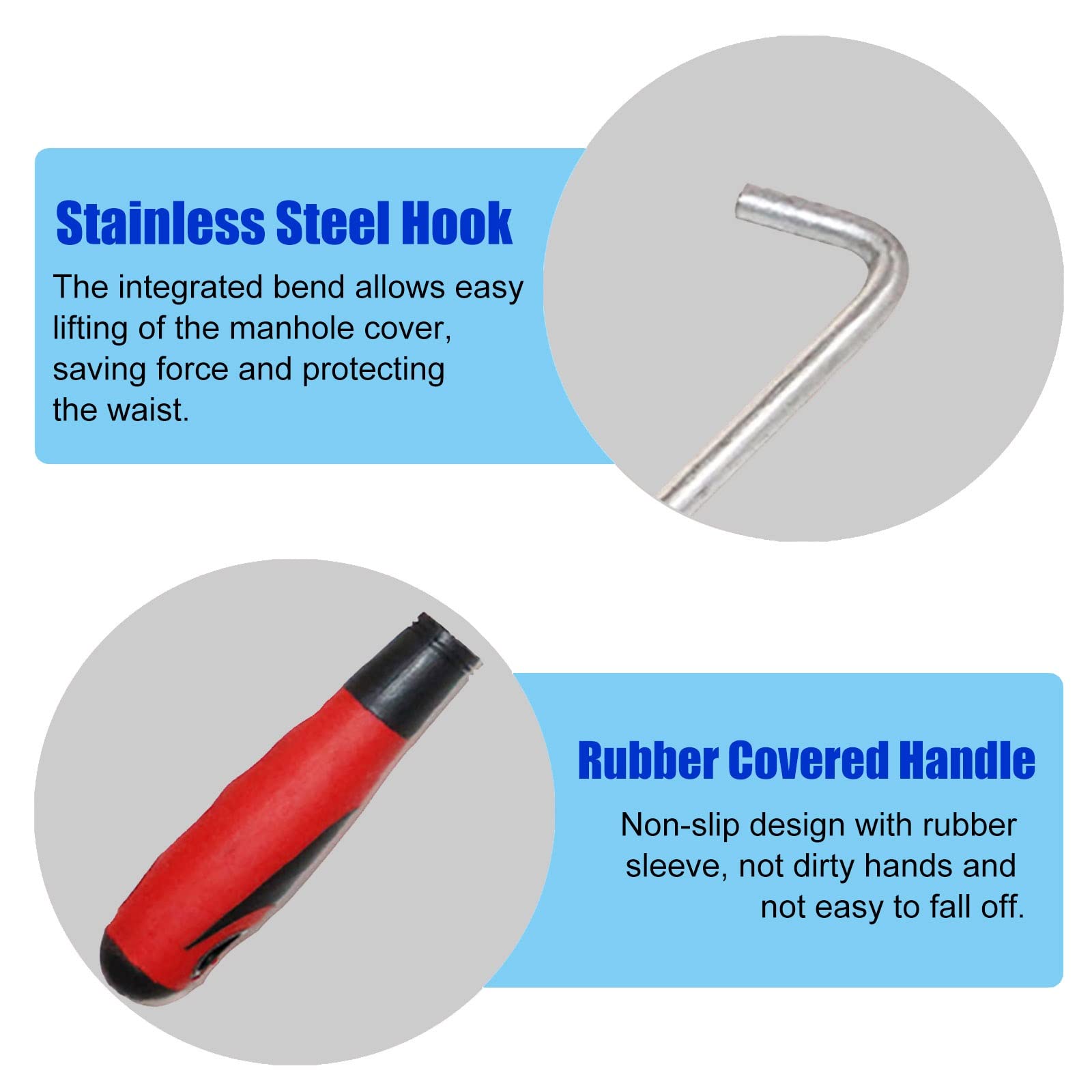 Der T-förmige Griff gibt dir perfekten Halt und Hebelkraft. Einfach in die Deckelöffnung stecken, anheben - fertig! Perfekt für Klärgruben, Regenrinnen-Abdeckungen und Schachtabdeckungen.