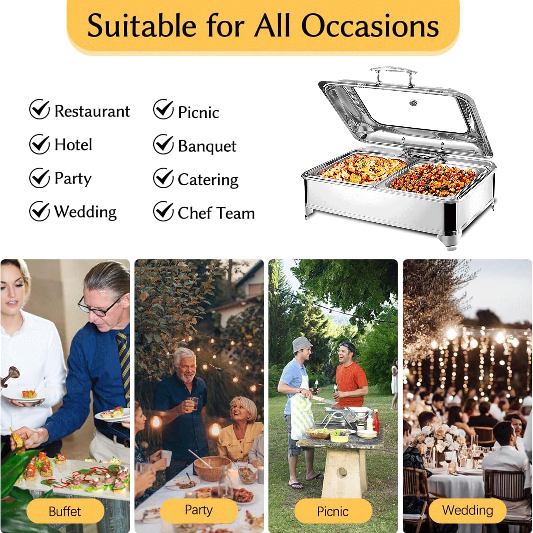 Perfekte Temperatur für dein Buffet! Dieser elektrische Speisewärmer aus Edelstahl hält deine Gerichte stundenlang warm und lecker. Mit satten 9 Litern Fassungsvermögen ist er ideal für Partys, Feiern oder den professionellen Einsatz.\n\nHighlights:\n• Aus hochwertigem Edelstahl 304 (lebensmittelecht)\n• Temperaturregelung per Touchscreen: 0°C bis 90°C\n• Klarer Glasdeckel - du siehst immer, was drin ist\n• Abnehmbare Wärmeplatte für einfache Reinigung\n• Hydraulik-Dämpfer für sanftes Schließen\n\nEinfach die gewünschte Temperatur einstellen und schon bleiben deine Speisen perfekt warm - ob Fleisch, Gemüse oder Soßen. Die spiegelpolierte Oberfläche ist super leicht zu reinigen und rostfrei.\n\nPerfekt für: Restaurants, Catering, Hochzeiten, Geburtstage oder Firmenfeiern. Mach dein Buffet zum Hit mit professioneller Ausstattung!
