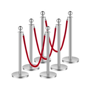 Professionelle Absperrung für deine Veranstaltung! Dieses VEVOR Set mit 4 Edelstahl-Pfosten und roten Samtseilen bringt sofort Ordnung in jede Menschenmenge.\\n\\nJeder Pfosten aus robustem 201 Edelstahl mit breiter, rutschfester Basis. Die befüllbaren Sockel nehmen bis zu 3,5kg Sand auf für maximalen Stand. Die 1,5m langen Samtseile verbinden die Pfosten elegant.\\n\\nSuper einfach aufzubauen - einfach zusammenschrauben, Sockel befüllen und fertig! Ideal für Hochzeiten, Ausstellungen, Galas oder Firmenevents.\\n\\nWetterfest für Innen- und Außenbereich. Das schlanke Design sieht edel aus und passt zu jedem Ambiente. Mach deine Veranstaltung zum organisierten Erfolg!