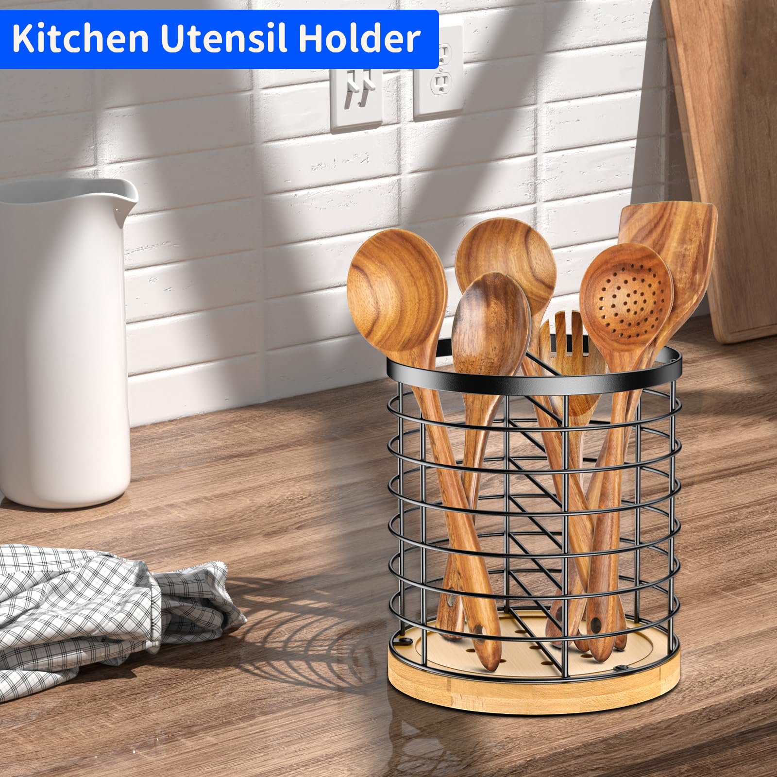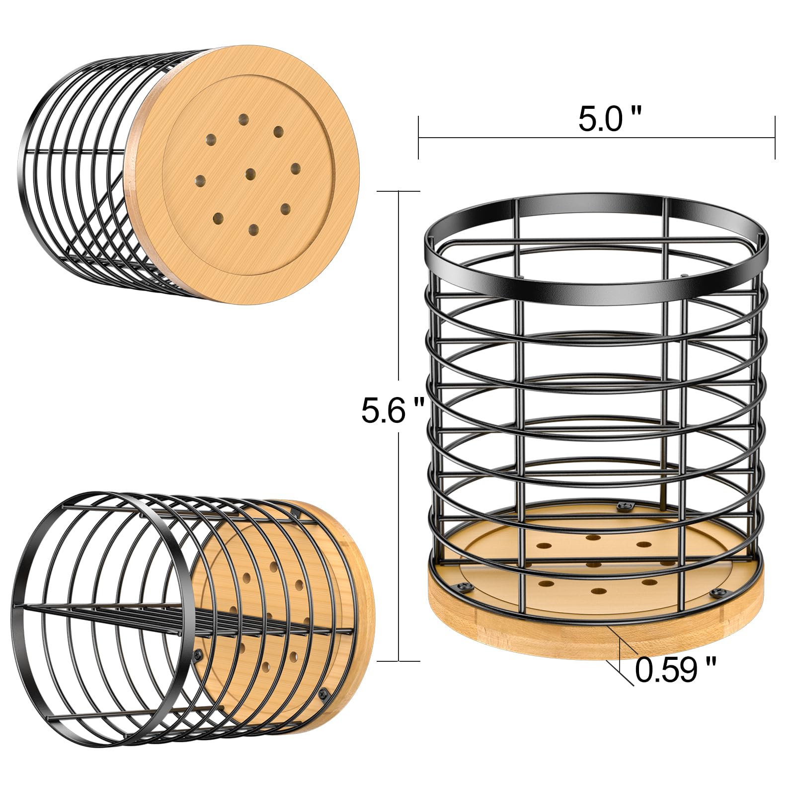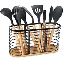 Ordnung in der Küche war noch nie so schön! Dieser AUSYDE Utensilienhalter aus Edelstahl und Bambus bringt System in deine Kochutensilien. Mit 13x13x15 cm Maßen bietet er genug Platz für Kochlöffel, Schöpfer, Schneebesen und mehr. Das offene Design sorgt dafür, dass du alles sofort siehst und griffbereit hast. Der hohle Metallgitter-Korb und der hydrophobe Bambussockel lassen Luft zirkulieren - deine Utensilien trocknen schnell und bleiben hygienisch sauber. In elegantem mattschwarz passt er zu jedem Küchenstil. Einfach auf die Arbeitsplatte stellen und schon hast du Ordnung! Perfekt als Geschenk für Kochbegeisterte oder einfach für dich selbst um endlich mal Ordnung in die Küchenschublade zu bringen. Mach deine Küche effizienter und stylischer zugleich!