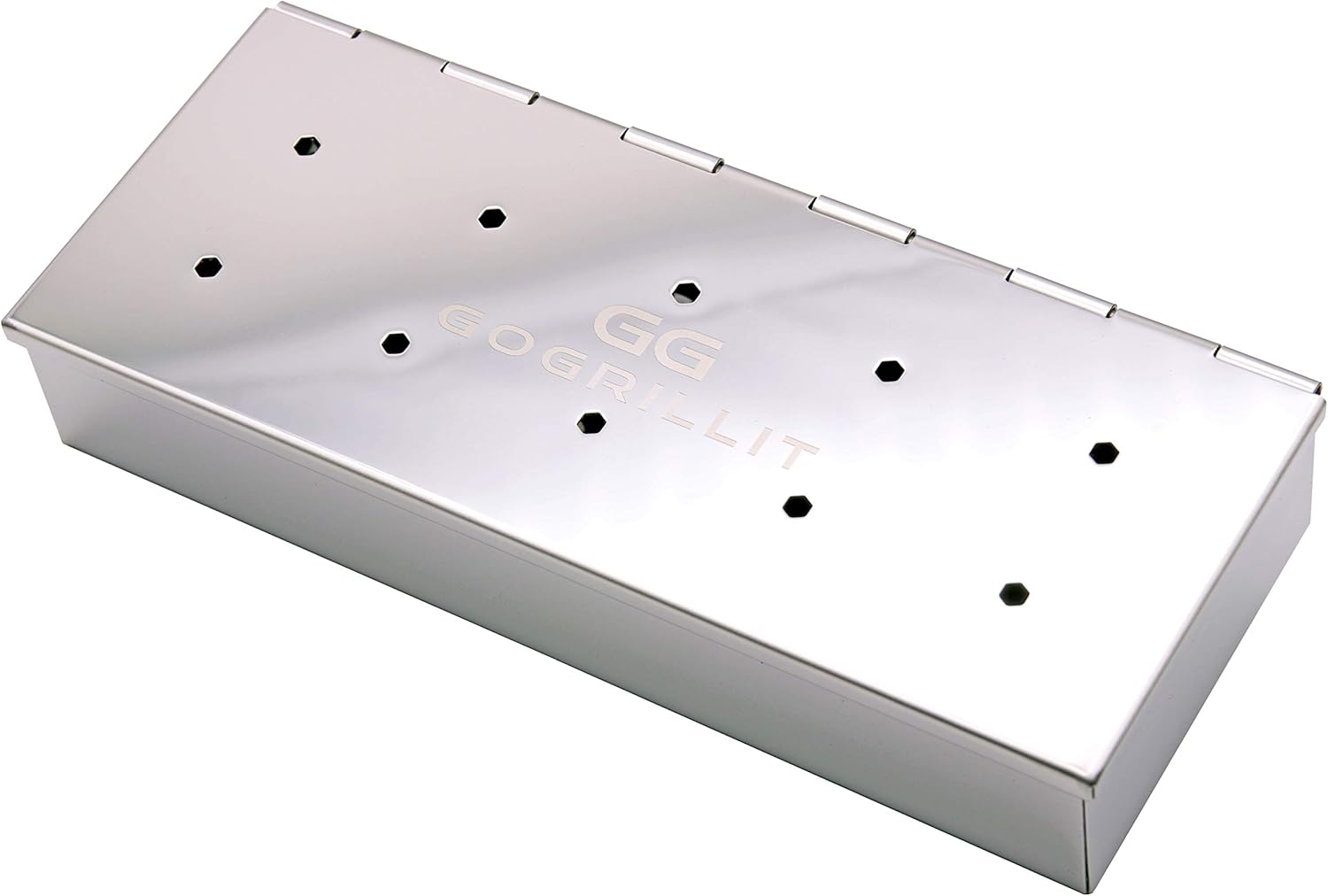 Grill-Fans aufgepasst! Diese Edelstahl-Räucherbox bringt eure Grillergebnisse auf das nächste Level. Mit 22,3 x 9,7 x 4,3 cm ist sie die perfekte Größe für jeden Grill. Einfach Holzspäne oder Räucherchips rein, Deckel drauf und auf den Grill legen. Die speziellen Poren sorgen für gleichmäßige Rauchverteilung - so bekommt Fleisch, Fisch oder Gemüse diesen unverwechselbaren Rauchgeschmack. Aus hochwertigem Edelstahl gefertigt, rostfrei und super langlebig. Passt zu Gas-, Holzkohle- und Elektrogrills. Der abnehmbare Deckel macht das Befüllen und Reinigen zum Kinderspiel. Ob klassisches Smoke oder experimentelle Aromen - mit dieser Box wird jeder Grillabend zum kulinarischen Erlebnis. Ein Muss für alle, die echten Rauchgeschmack lieben!