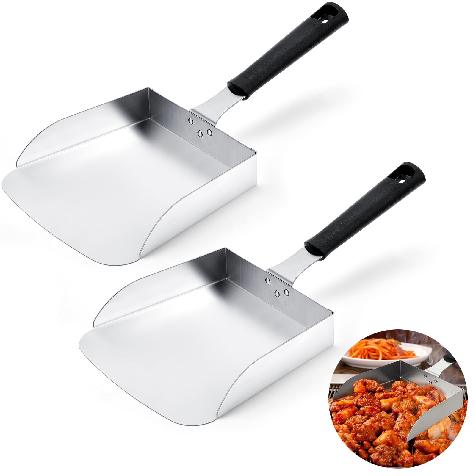 Kochst du gerne auf der großen Grillplatte oder Bratpfanne? Dann ist dieser Griddle Scoop aus Edelstahl dein neues Lieblingswerkzeug! Mit 15 Zoll (38cm) Gesamtlänge und der breiten, flachen Form meisterst du mühelos große Mengen - ob gebratener Reis, Hash Browns, Gemüse oder Burger. Aus robustem Edelstahl, rostfrei und super einfach zu reinigen. Die gerade Kante fungiert gleichzeitig als Schaber - perfekt um die Grillplatte sauber zu halten. Der ergonomische Griff liegt gut in der Hand und schützt vor der Hitze. Ein echtes Multitalent für jede Küche! Damit macht Kochen auf großen Flächen richtig Spaß. Ob für die Familie oder für Gäste - mit diesem Scoop wird das Zubereiten zum Kinderspiel. Einfach genial!