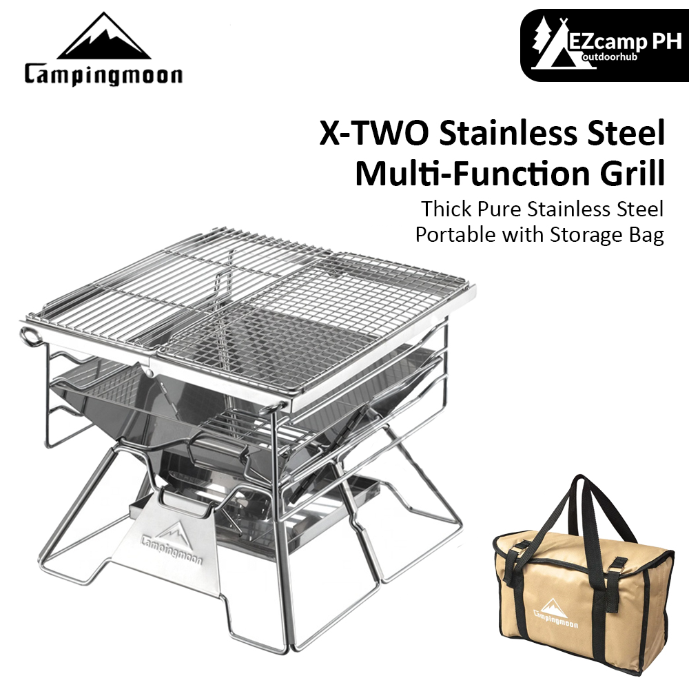 Dieser faltbare Grillrost von Campingmoon ist dein perfekter Begleiter für Outdoor-Abenteuer! Aus hochwertigem 304 Edelstahl gefertigt - lebensmittelecht, rostfrei und extrem langlebig. Mit 24,1x20,3cm Grillfläche genau richtig für 2-3 Personen. Zwei Höhen einstellbar (11,4cm oder 13,5cm) - ideal um die Hitze perfekt zu dosieren. Super stabil - trägt problemlos bis zu 30kg, also auch schwere Dutch Ovens oder Gusseisenpfannen. Nach dem Gebrauch einfach zusammenklappen und in der mitgelieferten Tragetasche verstauen - platzsparend und sauber. Perfekt für Camping, Wandern, Picknick, Strand oder den eigenen Garten. Einfach über offenem Feuer, Feuerstelle oder Campingkocher platzieren und schon kann's losgehen! Mach dein nächstes Outdoor-Essen zu einem unvergesslichen Erlebnis!