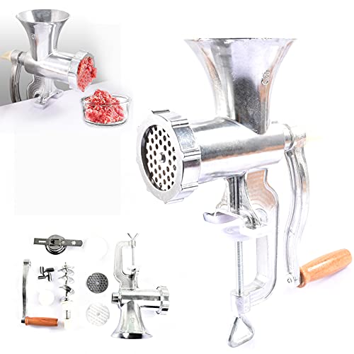 Frische Wurst selbst gemacht! Dieser manuelle Fleischwolf von Restokki verwandelt deine Küche in eine Metzgerei. Aus robuster Aluminiumlegierung gefertigt, ist er gesund, ungiftig und leicht zu reinigen. Der ergonomische lange Griff macht das Mahlen zum Kinderspiel. Perfekt für Schweine-, Rind-, Lammfleisch, Hähnchen und sogar Gemüse. Die bogenförmige Einfüllöffnung sorgt für zartes, schmackhaftes Ergebnis. Mit Schraubzwinge für festen Tischhalt. Ob für Fleischklößchen, Frikadellen oder hausgemachte Wurst - dieses Küchengerät ist ein echter Alleskönner!