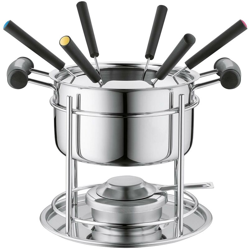 Lust auf nen gemütlichen Fondue-Abend? Mit diesem tollen Mäser Fondueset wird's was! Der Topf aus verkupfertem Edelstahl fasst stolze 1,7 Liter und ist sogar induktionsgeeignet - super praktisch! Im Set findest du alles, was du brauchst: Topf mit Spritzschutz, Rechaud, Brenner und gleich 6 Fonduegabeln. Das Beste: Es läuft komplett kabellos mit Brennpaste, also keine störenden Kabel am Esstisch. Der Rechaud aus Edelstahl sieht nicht nur gut aus, sondern steht auch super stabil mit ner schützenden Bodenplatte. Ob klassisches Käsefondue, Fleisch in Brühe oder was Exotisches - hier ist alles möglich. Einfach aufbauen, Brennpaste rein, anzünden und loslegen! Perfekt für gemütliche Abende mit Freunden oder Familie - nicht nur zu Weihnachten oder Silvester. Und nachher alles easy in der Spüle reinigen (Handwäsche empfohlen). Kommt im hübschen Geschenkkarton - ideal zum Verschenken!