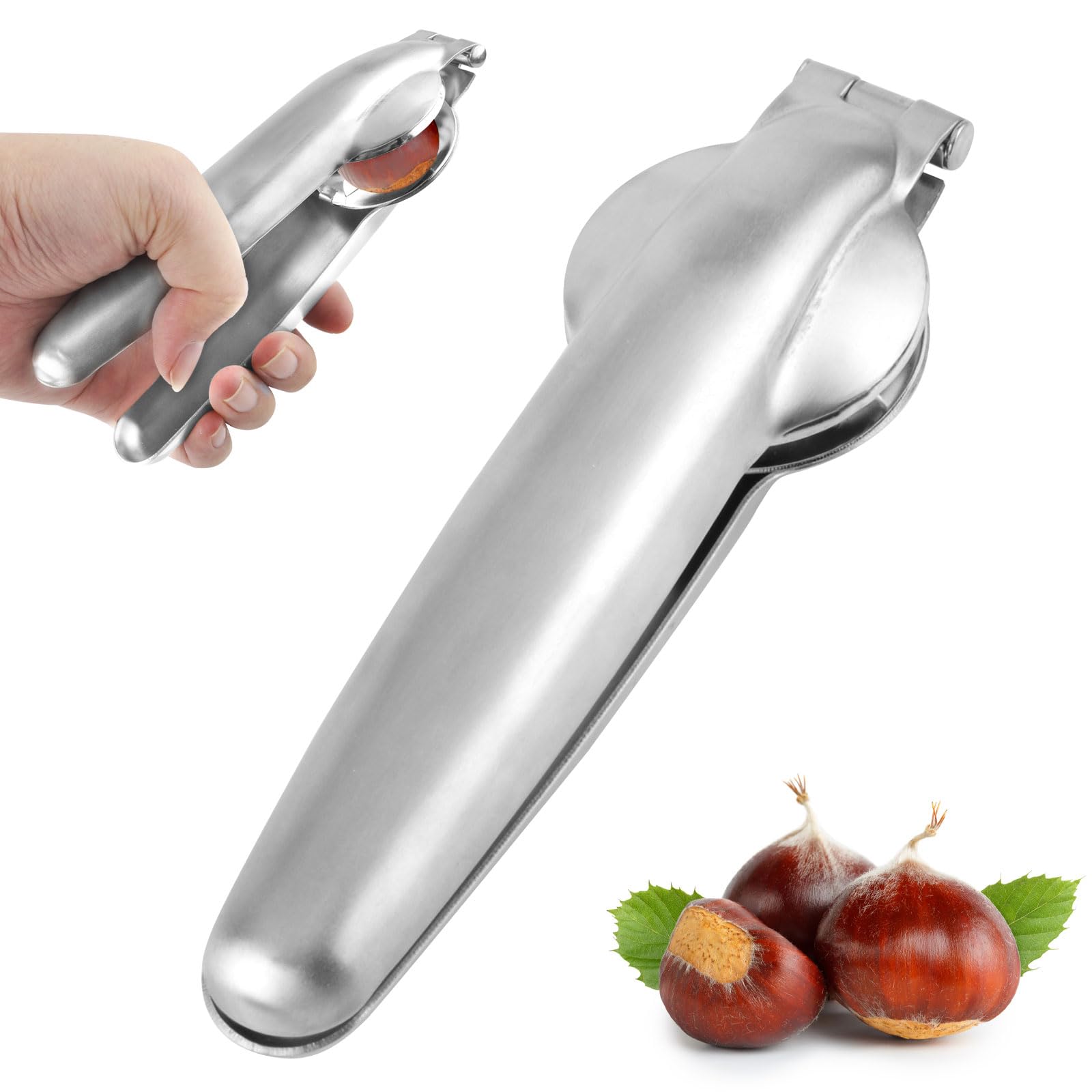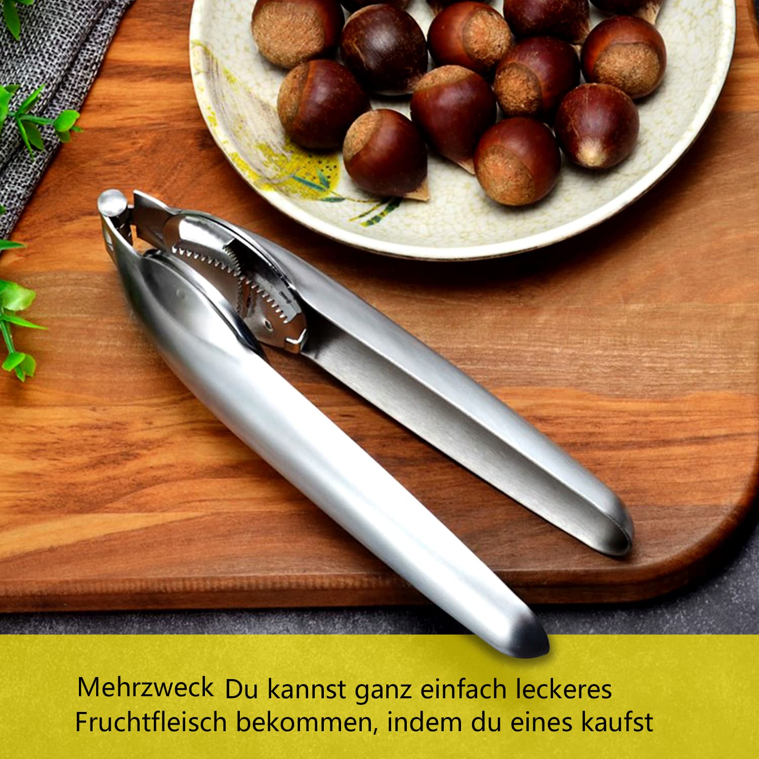 Mensch, dieser Kastanien-Schneider macht das Nüsseknacken ja zum Kinderspiel! Aus hochwertiger Aluminiumlegierung und mit ABS-Griff ist er nicht nur super stabil, sondern auch super bequem in der Hand. Die kreuzförmig gezackte Kante im Inneren packt Kastanien, Walnüsse und andere Nüsse richtig fest - nichts verrutscht mehr! Mit dem verlängerten Hebel brauchst du kaum Kraft - einfach drücken und schon öffnet sich die Nuss perfekt. Die runden Rillen und die Schale halten alles sicher an Ort und Stelle - keine Verletzungen mehr an den Händen! Mit 17,5cm Länge ist er gut zu greifen und liegt perfekt in der Hand. Perfekt für die Weihnachtszeit, wenn Maroni und Nüsse auf dem Tisch stehen, aber auch für den ganzjährigen Gebrauch in der Küche. Einfach reinigen und immer wieder verwenden - das Teil hält ewig! Ob für Zuhause, in der Bäckerei oder im Restaurant - dieser Nussknacker spart Zeit und Nerven. Ein geniales Geschenk für alle, die gerne nüsse knabbern!