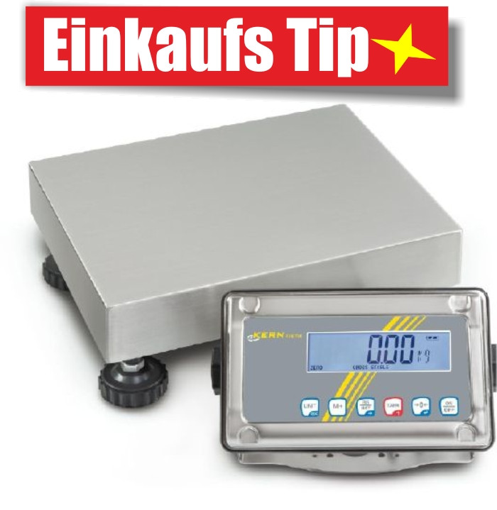 Diese KERN Tischwaage ist ein echtes Arbeitstier! Mit IP68 Schutzklasse hält sie so einiges aus - sogar komplettes Untertauchen in Wasser ist kein Problem.