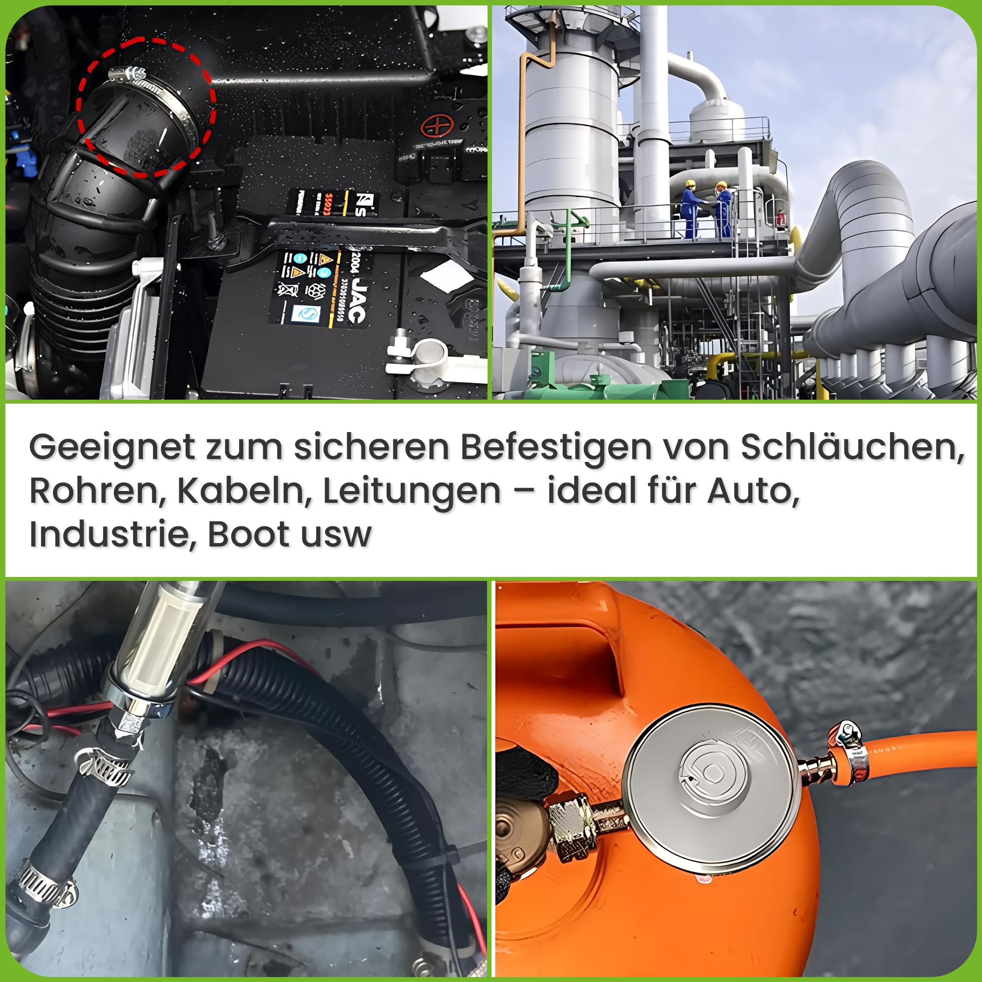 Diese hochwertigen Edelstahl-Schlauchschellen von Offgridtec sind die perfekte Lösung für sichere Rohr- und Schlauchverbindungen! Im praktischen 8er-Set für Schlauchdurchmesser von 32mm bis 50mm. Aus korrosionsbeständigem V2A Edelstahl gefertigt - rostfrei und extrem langlebig. DIN 3017 zertifiziert für garantierte Qualität und gleichbleibende Leistung. Mit 9mm Bandbreite und glatten Bandkanten, die deine Schläuche nicht beschädigen. Der praktische Schraubmechanismus ermöglicht einfache Montage und Lösung. Perfekt für industrielle Anwendungen, Automotive-Bereich, Gartenbewässerung, Lüftungssysteme und DIY-Projekte. Ob drinnen oder draußen - diese Schellen halten jeder Belastung stand und sorgen für absolut auslaufsichere Verbindungen. Hol dir jetzt dieses professionelle Set und mach deine Installationen bombenfest!