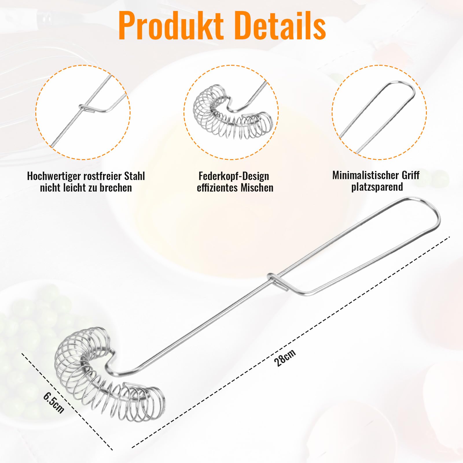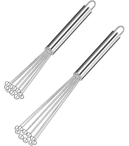 Diese Spiralbesen aus Edelstahl sind echte Küchen-Helden! 2 Stück im Set - immer einer griffbereit. Aus hochwertigem 304er Edelstahl, rostfrei und spülmaschinenfest. Der Spiralkopf bringt super viel Luft in Eier, Saucen und Teige. Ergonomischer Griff liegt perfekt in der Hand. Vielseitig einsetzbar - ob für Rührteig, Pancakes oder Salatdressing. Macht das Kochen und Backen so viel einfacher. Einfach ausprobieren!