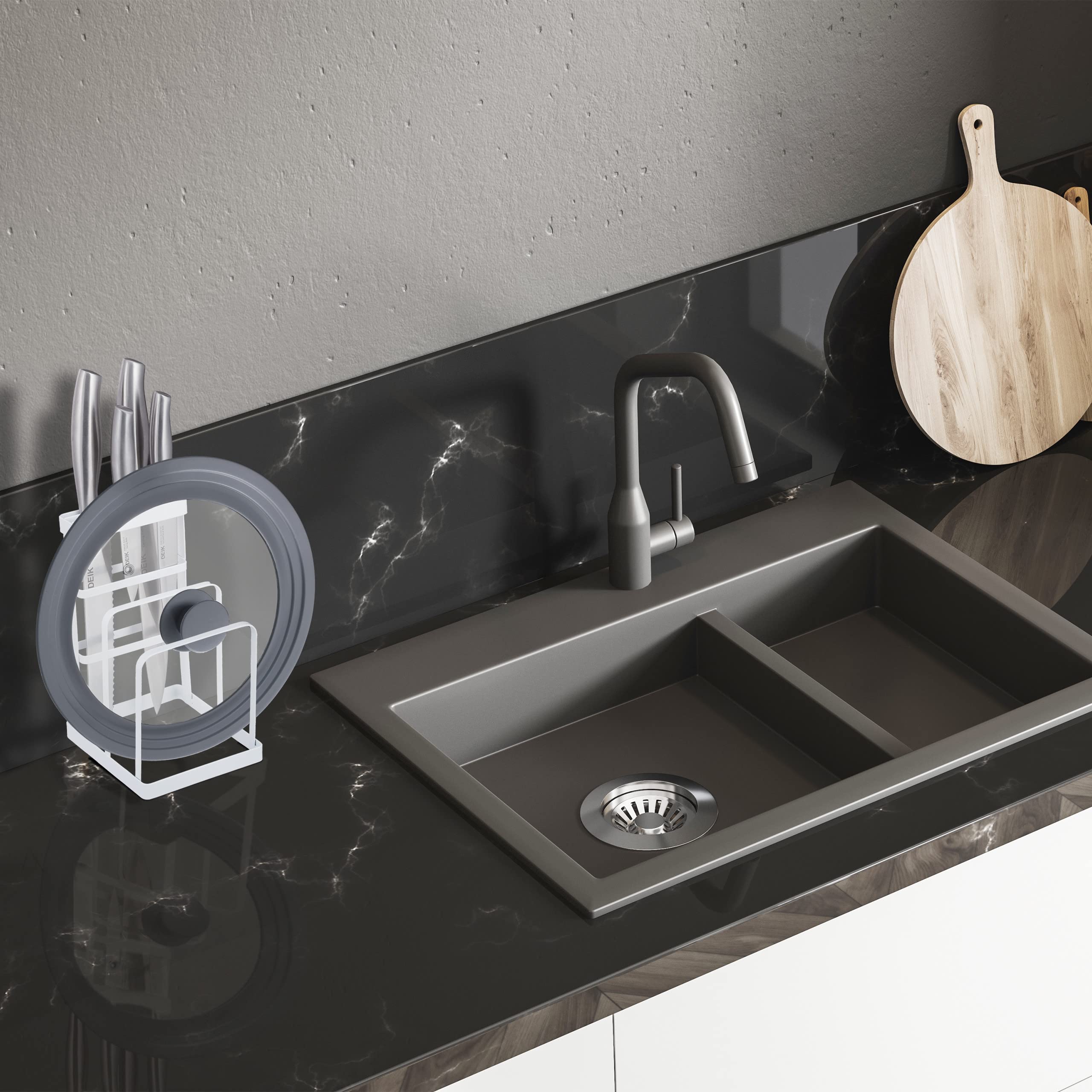 Endlich Ordnung in der Küche! Dieser Edelstahl-Schneidebretthalter organisiert deine Bretter, Messer und Topfdeckel platzsparend an einem Ort. Bis zu 20kg Tragkraft!