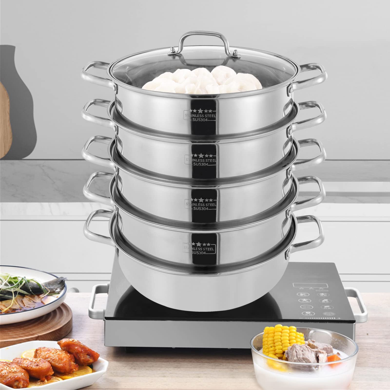 Alter, dieser 5-lagige Dampfgarer ist ein Alleskönner in der Küche! Aus hochwertigem Edelstahl mit Glasdeckel, rostfrei und spülmaschinengeeignet. Mit 30 cm Durchmesser passt da ne Menge rein - dampf gleichzeitig Gemüse, Fisch, Fleisch oder sogar Babynahrung. Der Energiesammler-Boden heizt schnell auf, spart dir Zeit. Egal ob Induktion, Elektro oder Gas, der Topf funktioniert auf allen Herden. Maße: Untertopf 10 cm hoch, jede Schublade 7 cm, also viel Platz. Einfach zusammenbauen (Decke selbst montieren), und schon kannst du loslegen. Vor der ersten Nutzung mit Wasser reinigen, und mit nem weichen Tuch pflegen, um Kratzer zu vermeiden. Wegen Messung kann's minimale Größenabweichungen geben, aber das stört nicht. Kochst du gern gesund und effizient? Dann ist das Set perfekt - ein Topf, mehrere Gerichte, und du hast mehr Freiheit in der Küche!
