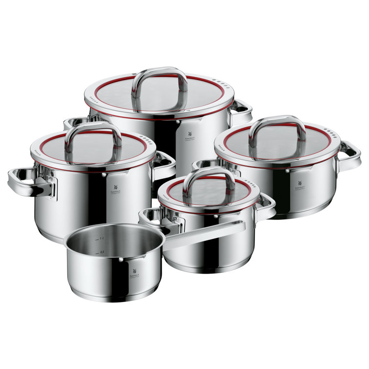Koch-Enthusiasten, dieses WMF Function 4 Topfset macht Kochen zum Erlebnis! 4-teilig mit drei Töpfen (1,9L, 3,4L, 5,7L) und einer Stielkasserolle (1,4L) - alles aus Cromargan Edelstahl 18/10. Der geniale Glasdeckel mit rotem Silikonring hat 4 Funktionen: komplett geschlossen, ganz offen, oder mit großen/kleinen Löchern zum Abgießen. Perfekt für Nudeln, Reis oder einfach nur zum Dämpfen! Der TransTherm-Allherdboden sorgt für gleichmäßige Hitze auf Induktion, Gas, Ceran - einfach allen Herdarten. Die Hohlgriffe werden nicht heiß, und die Innenskala hilft beim Abmessen. Spülmaschinengeeignet und backofenfest bis 250°C (mit Deckel 180°C). Deutsche Qualität, die ein Leben lang hält. Ob für Anfänger oder Profi-Köche - mit diesen Töpfen gelingt einfach alles. Vom einfachen Nudelwasser bis zur aufwändigen Sauce - hier macht alles Spaß! Einmal investieren und jahrelang Freude am Kochen haben. Einfach umwerfend gut!