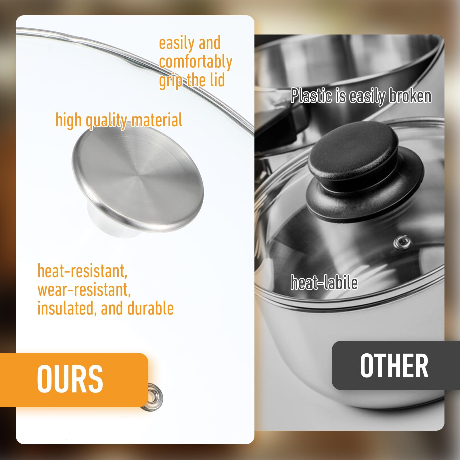 Hey, wenn der Griff an deinem Topfdeckel kaputt geht oder einfach nur hässlich ist, ist dieser Ersatzgriff die perfekte Lösung! Aus hochwertigem Edelstahl gefertigt, ist er hitzebeständig und super langlebig. Mit ca. 10,2 x 4,0 x 1,9 cm passt er für die meisten Topfdeckel - ob für Dampftöpfe, Wokdeckel oder normale Suppentöpfe. Die Oberfläche ist glatt poliert und fühlt sich angenehm an. Montieren ist total einfach: Alten Griff ab, neuen drauf und festziehen. Schon sieht dein Topfdeckel aus wie neu! Der klassische Design macht dein Kochgeschirr sogar noch schöner. Praktisch: Du musst nicht gleich neue Töpfe kaufen, wenn nur der Griff kaputt ist. Spare Geld und tu was für die Umwelt! Der Griff liegt gut in der Hand und gibt dir sicheren Halt, auch wenn der Deckel mal schwerer ist. In silberner Farbe passt er zu praktisch jedem Kochgeschirr. Einfach bestellen und deine alten Topfdeckel wieder flott machen!