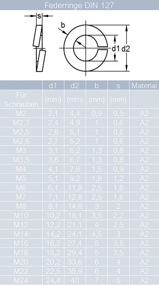 Kleine Teile, große Wirkung! Diese 25 Federringe nach DIN 127 aus Edelstahl V2A in Schwarz sind die perfekten Sicherungsringe für deine Projekte. Robuste Qualität, rostfrei und langlebig. Ideal für Modellbau, Fahrradreparaturen, Möbelmontage und viele andere Anwendungen. Einfach über die Schraube schieben und sichern - schon ist alles bombenfest. Die schwarze Oberfläche sieht zudem noch super aus. Im praktischen 25er-Set hast du immer genug Vorrat. Ein Muss in jeder Werkstatt!