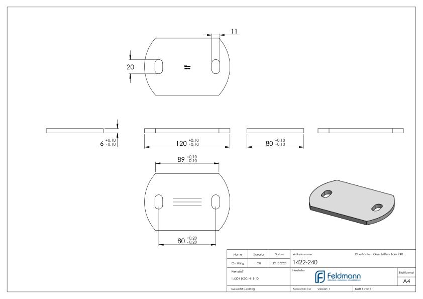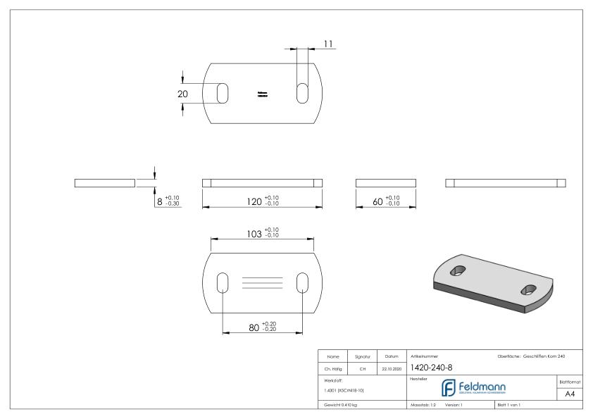 FeNau Ankerplatte 120x6mm Edelstahl V4A - Mit Längsschliff Für Besseren Halt